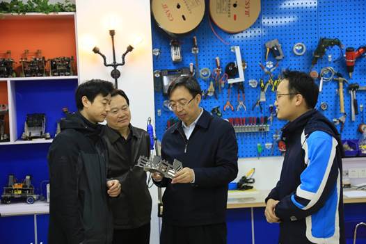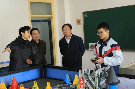 汇报结束后,葛道凯厅长一行在孙夕礼校长陪同下参观了我校校史馆和初级、中级、高级三个机器人工作室,认真观看了学生演示的机器人比赛项目。葛厅长对我校注重学生实践能力与创新意识培养的校本课程体系给予了充分肯定。