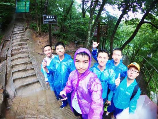 从最初的细雨微蒙,到逐渐连成线的雨幕,天堂寨仿若温文尔雅、款款而来的吟游诗人,只颂草木嶙峋的旷意豁达。雨势渐大,而同学们前进的脚步并未停歇,我们向着最高峰进发,行走,就是最好的教育。
