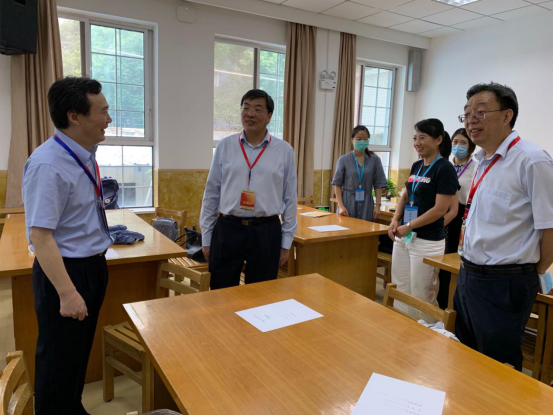 马欣副省长仔细察看了体温检测点、考务办公室、监控室等场所,详细询问了物资保障以及考务工作中的一些环节、细节。马欣副省长强调,高考是关系千家万户的民生大事。他赞扬金中的考务工作细致,保障有力,也预祝金中学子,自信迎考,考出佳绩。