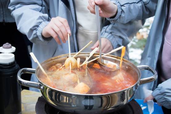 无论天气多么寒冷,美食带来的温暖与满足永远也不会褪色。裹挟着食物香气的蒸汽弥漫在校园林荫道上,慰藉着师生们浑身上下的每一个细胞。