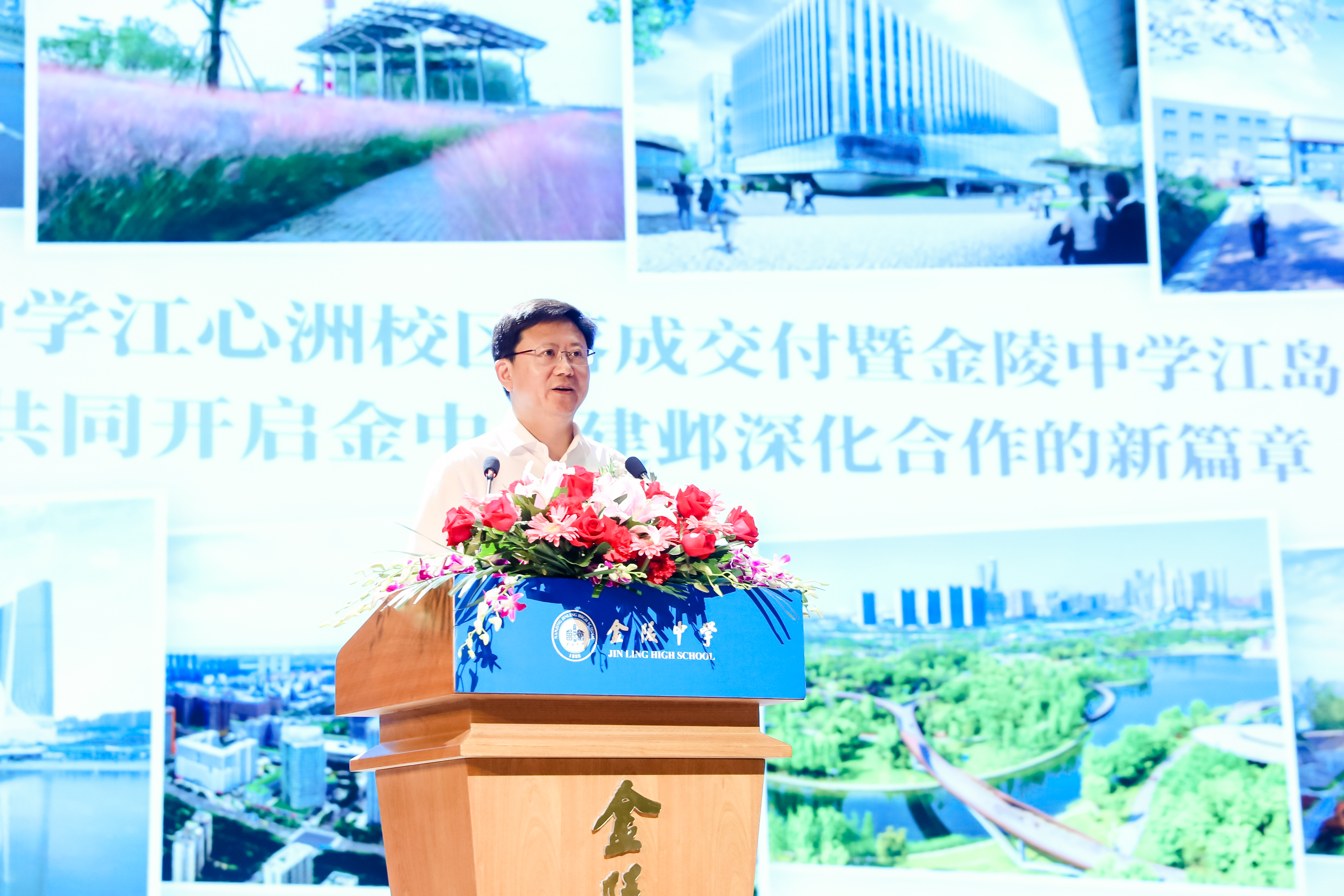 南京市副市长孙百军和建邺区人民政府区长姜宸为金陵中学江岛教育集团揭牌