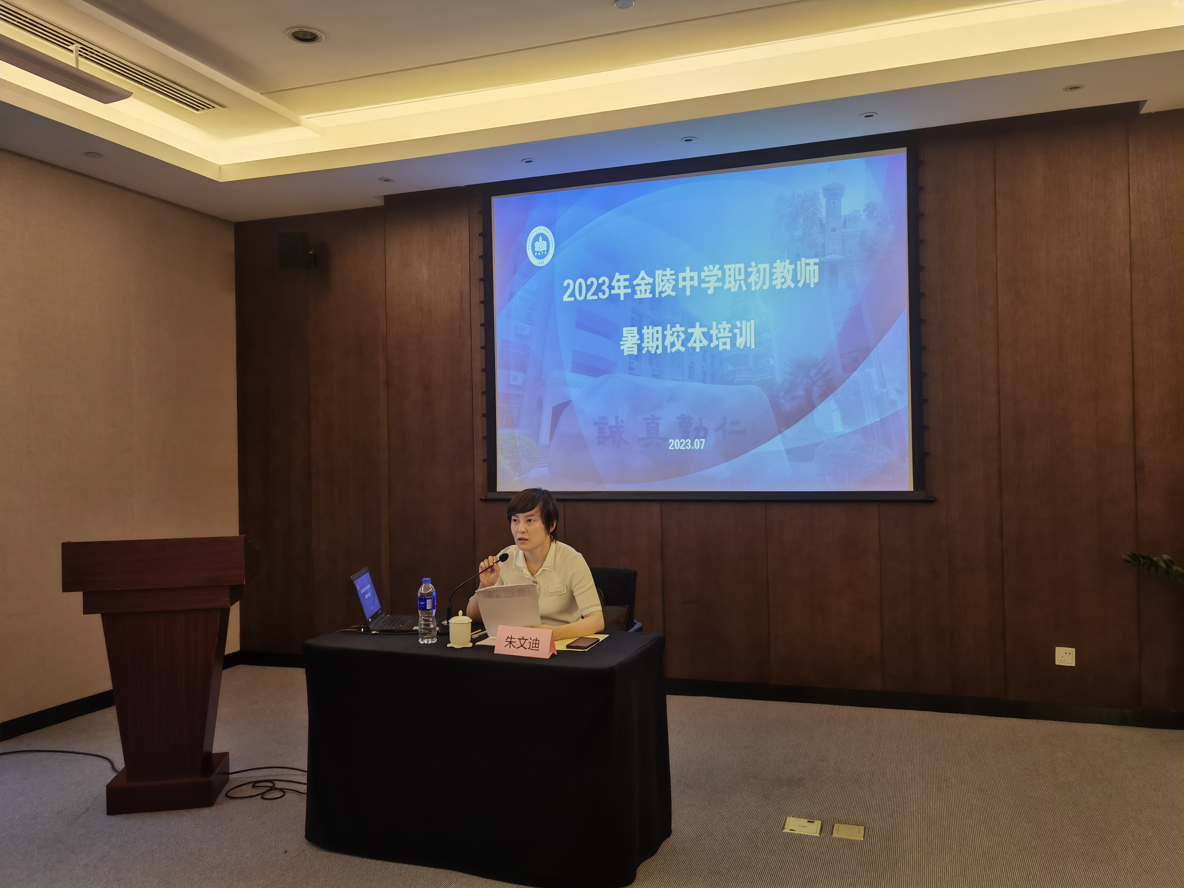 7月10日,在南大国际会议中心,校务办公室副主任朱文迪为大家解读本次校本培训内容与要求。培训正式拉开序幕。