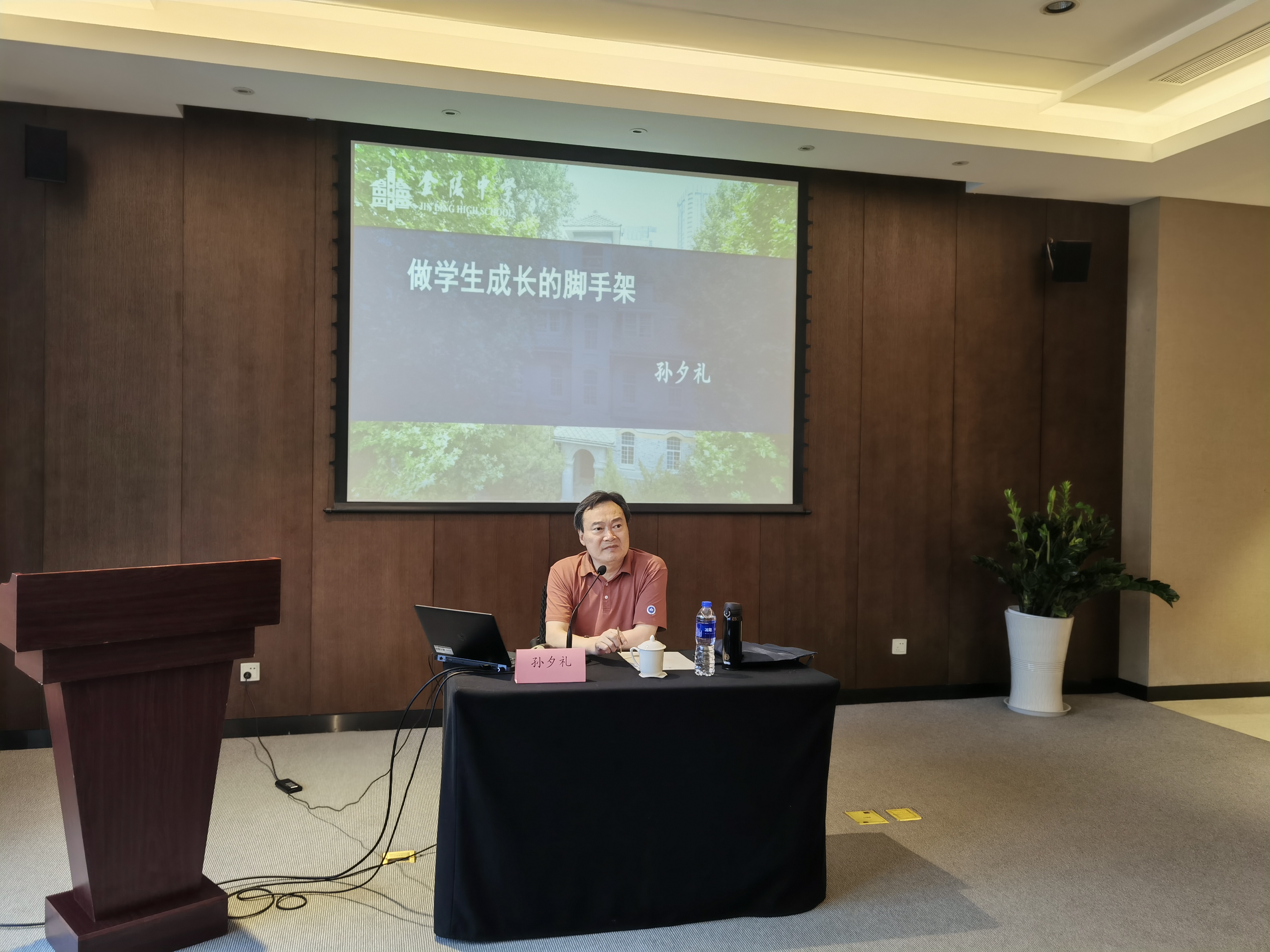 7月11日,孙夕礼校长以《做学生成长的“脚手架”》为主题,为新入职教师们细述百卅金中源远流长的办学历程与丰硕成果。孙校长特别强调,教育的本质是“立德树人,自由成长”,教师要做学生成长过程中坚固、可靠的“脚手架”。所谓“坚固”,是指其材质和内涵,“可靠”则重在教师的德性、品质。