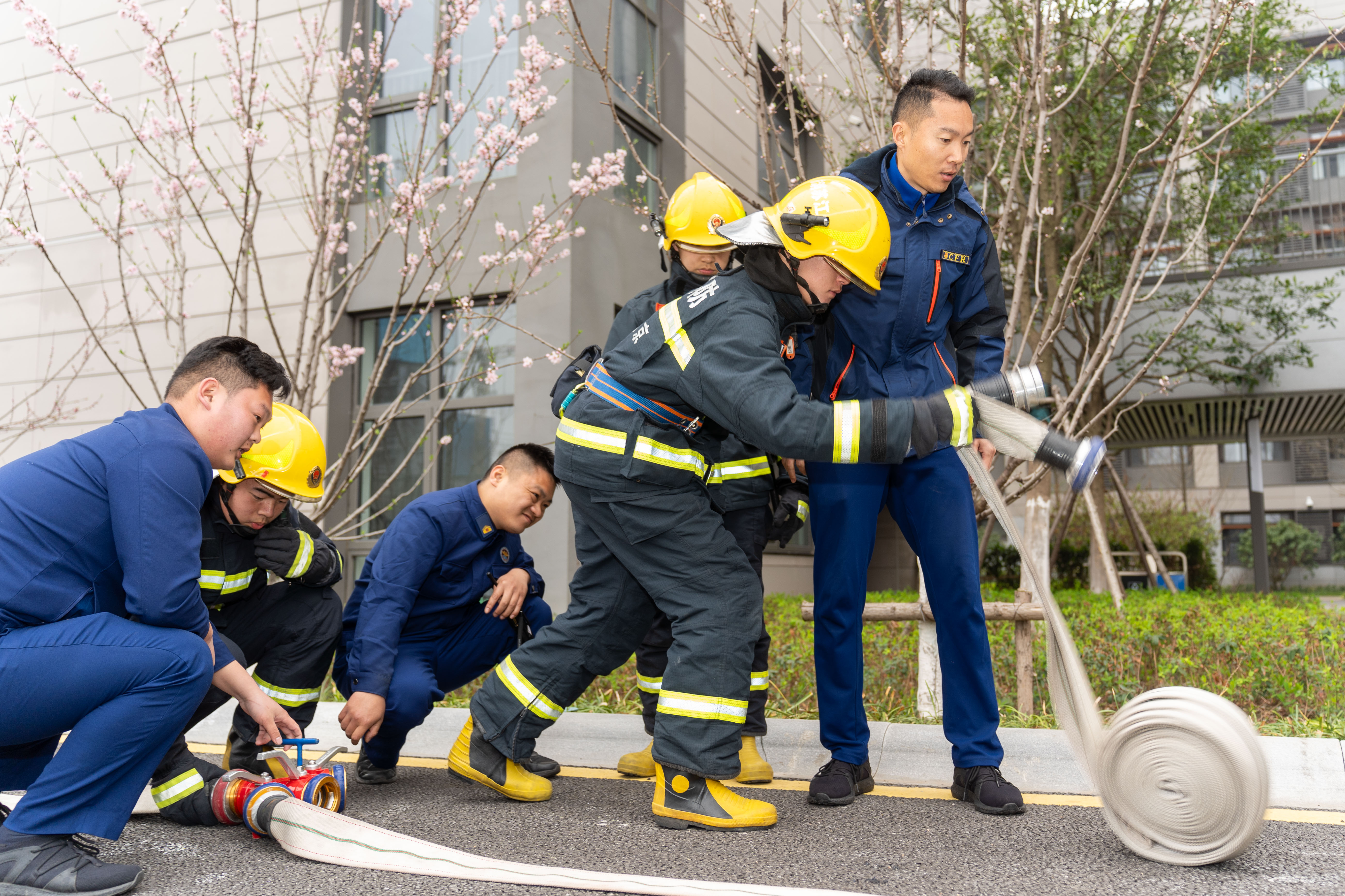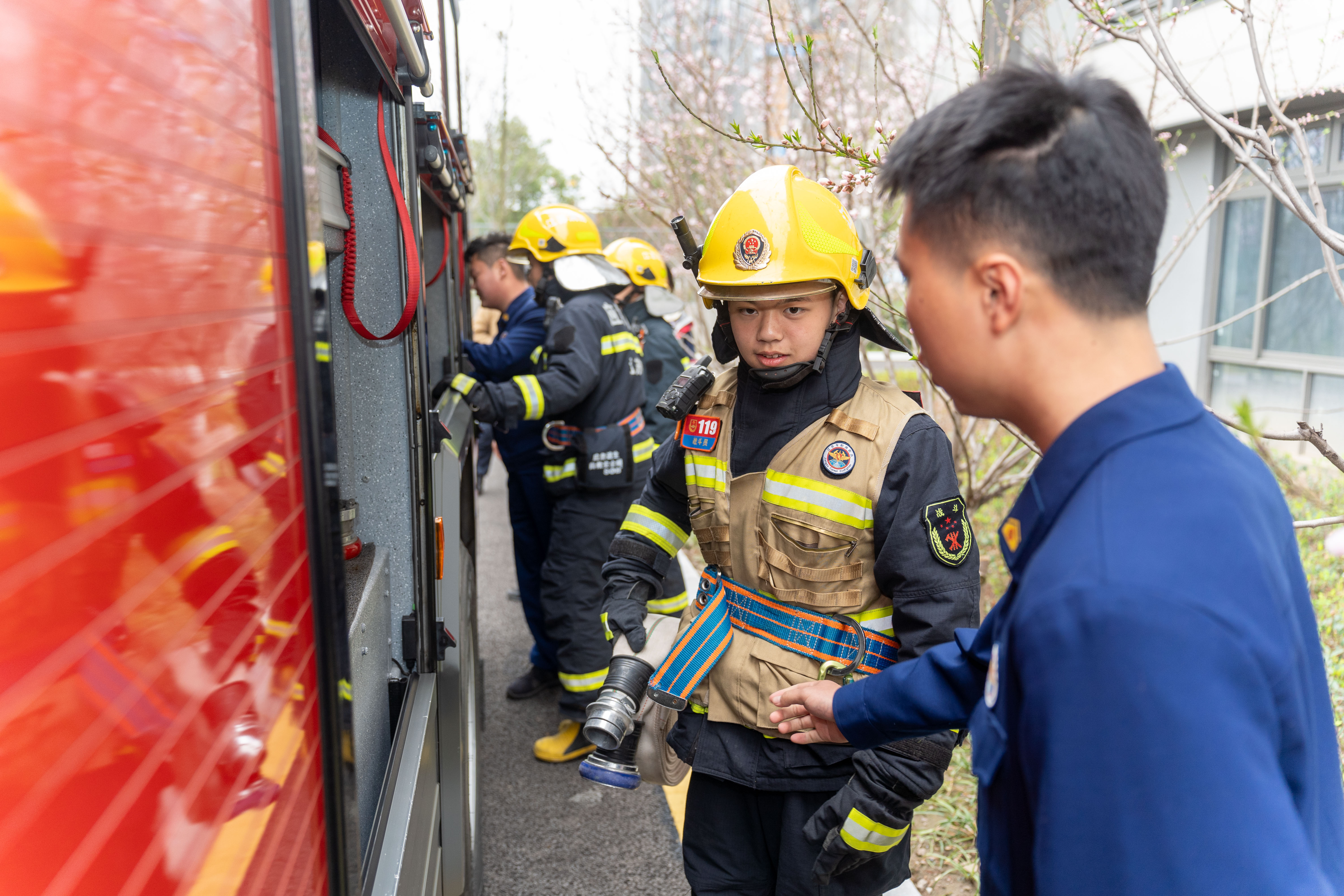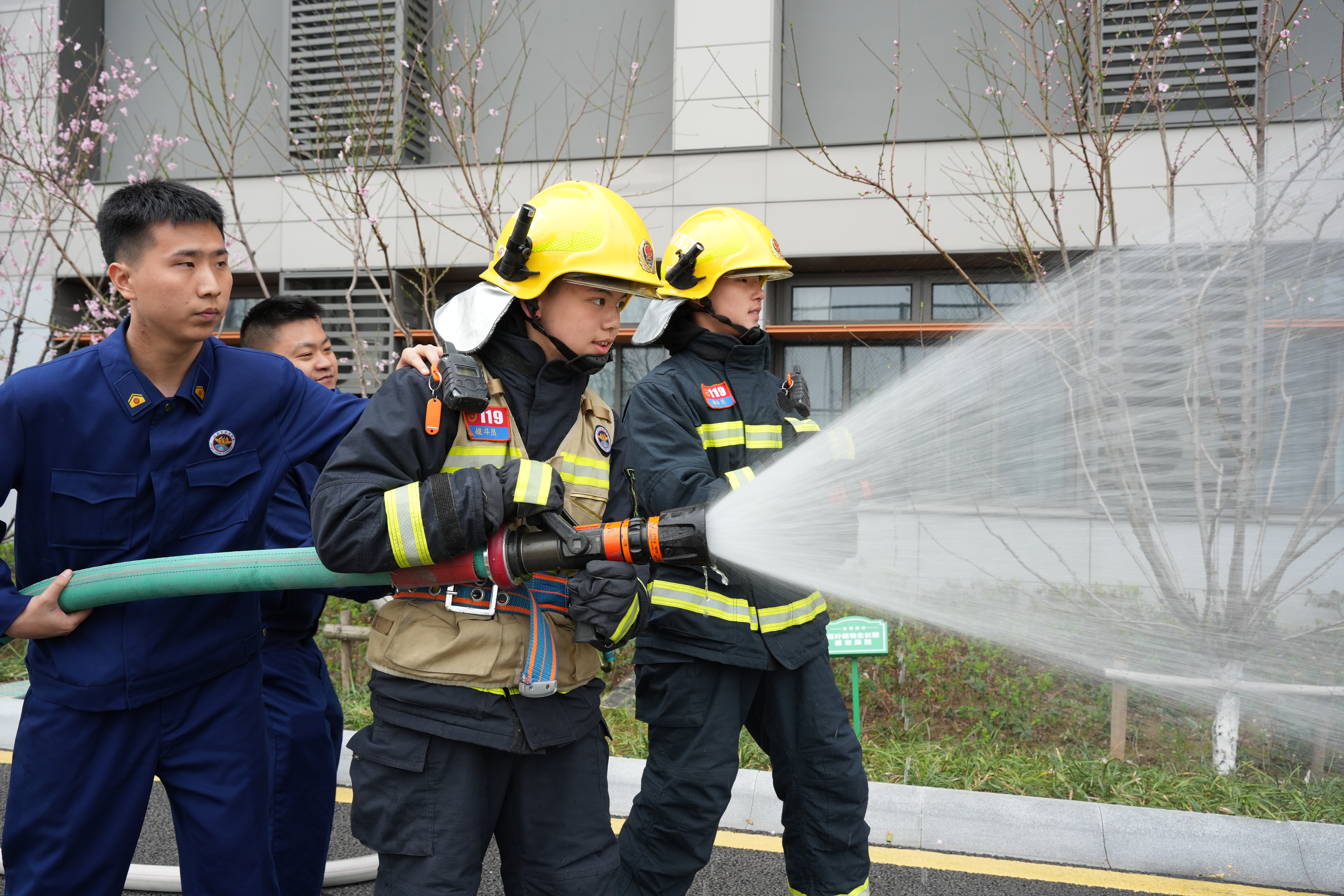 仅20分钟的水带铺设出水训练,4位男生脸上已经出现了密密麻麻的汗珠,“水枪真的很沉,水压很大,消防员工作太辛苦了!”这一体验也让在场的同学们对消防工作有了更直观、更真实的感受。