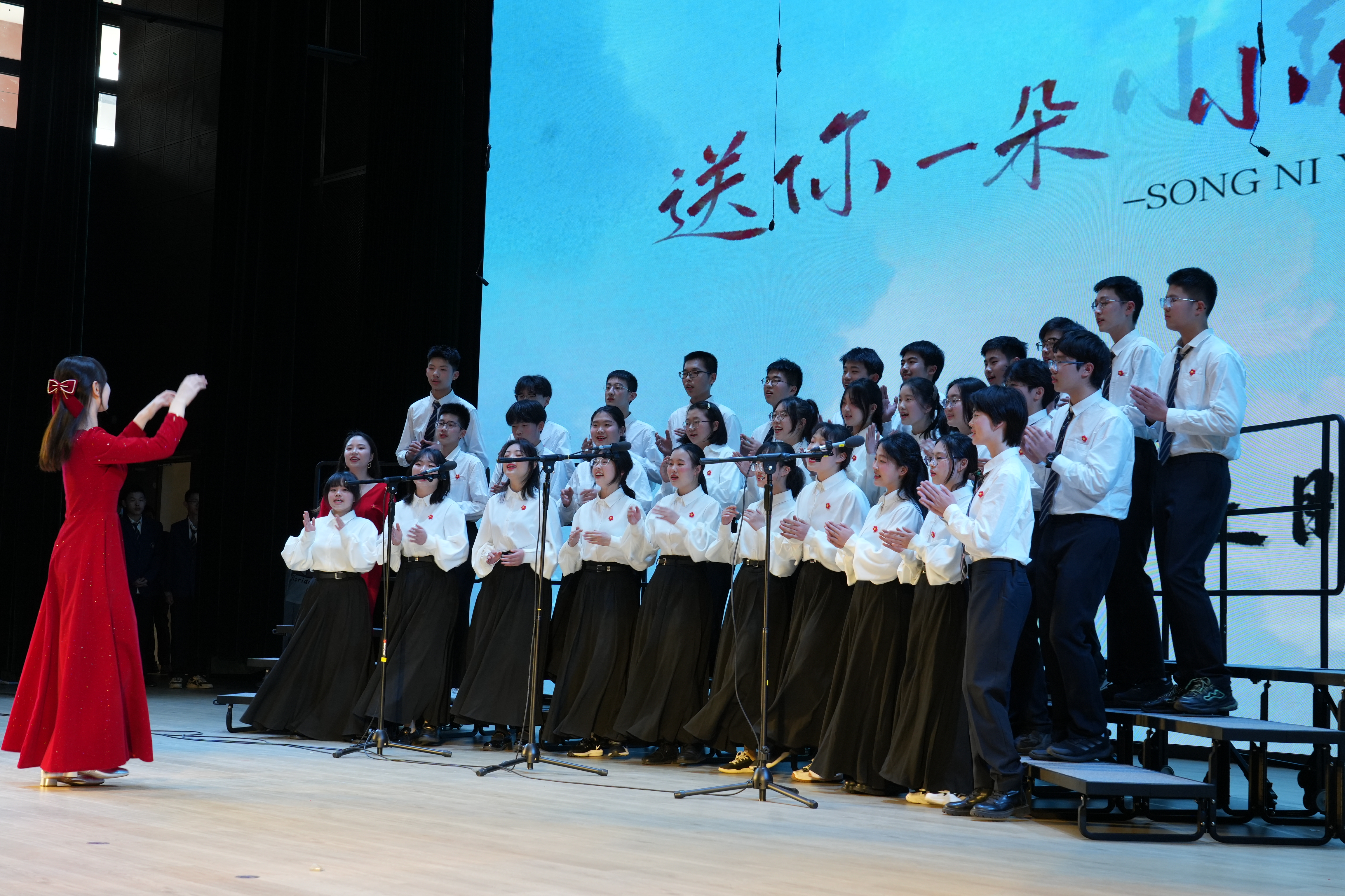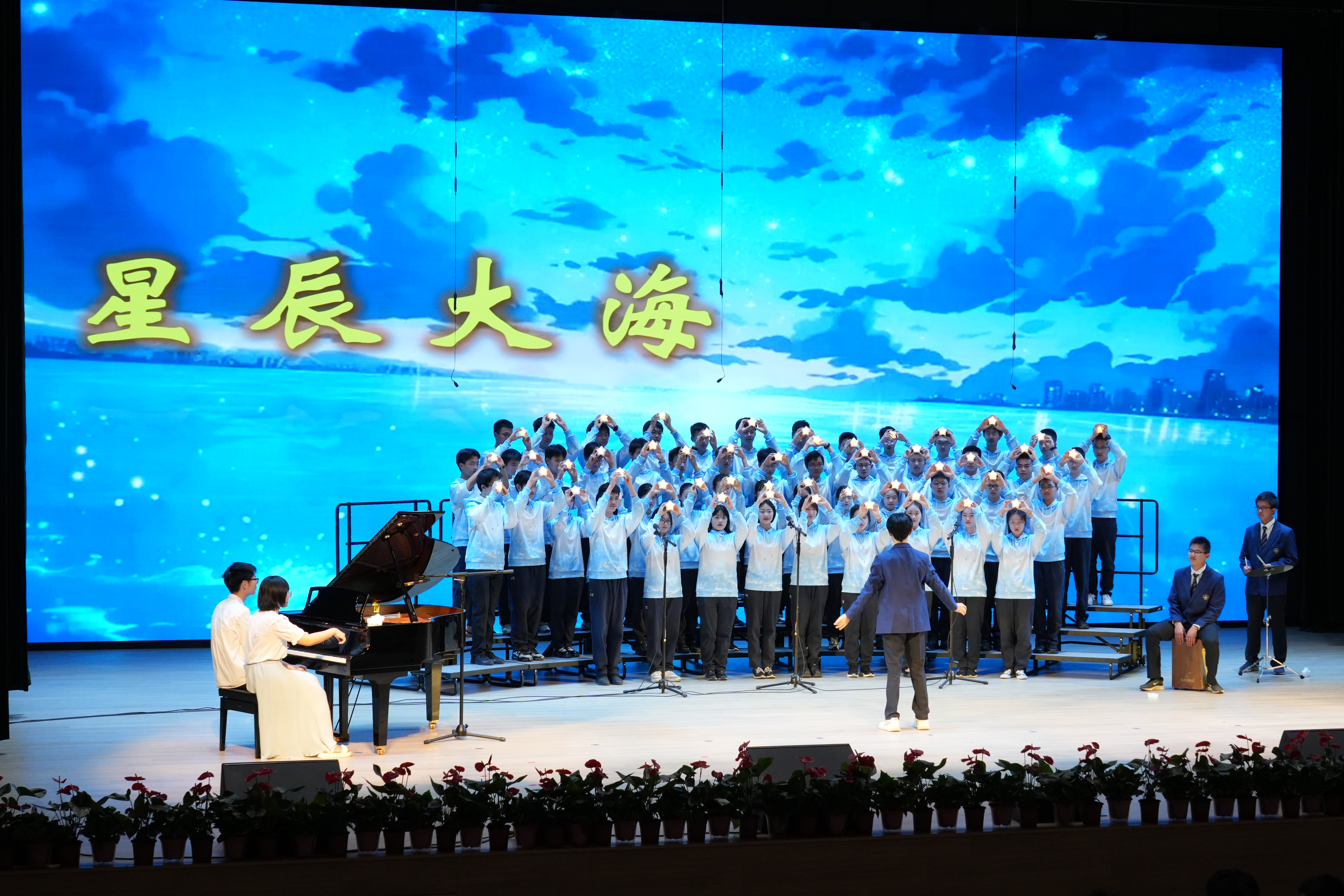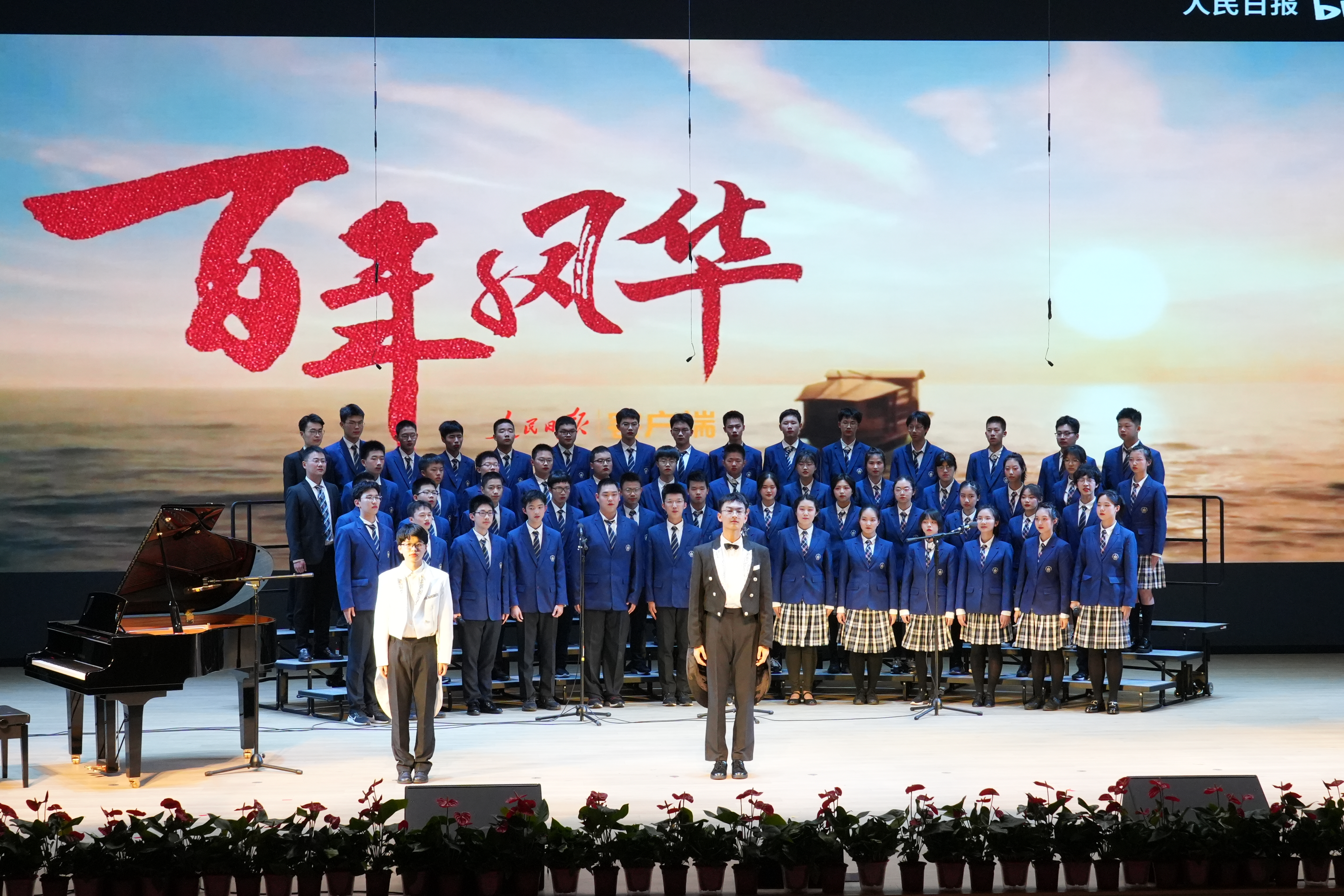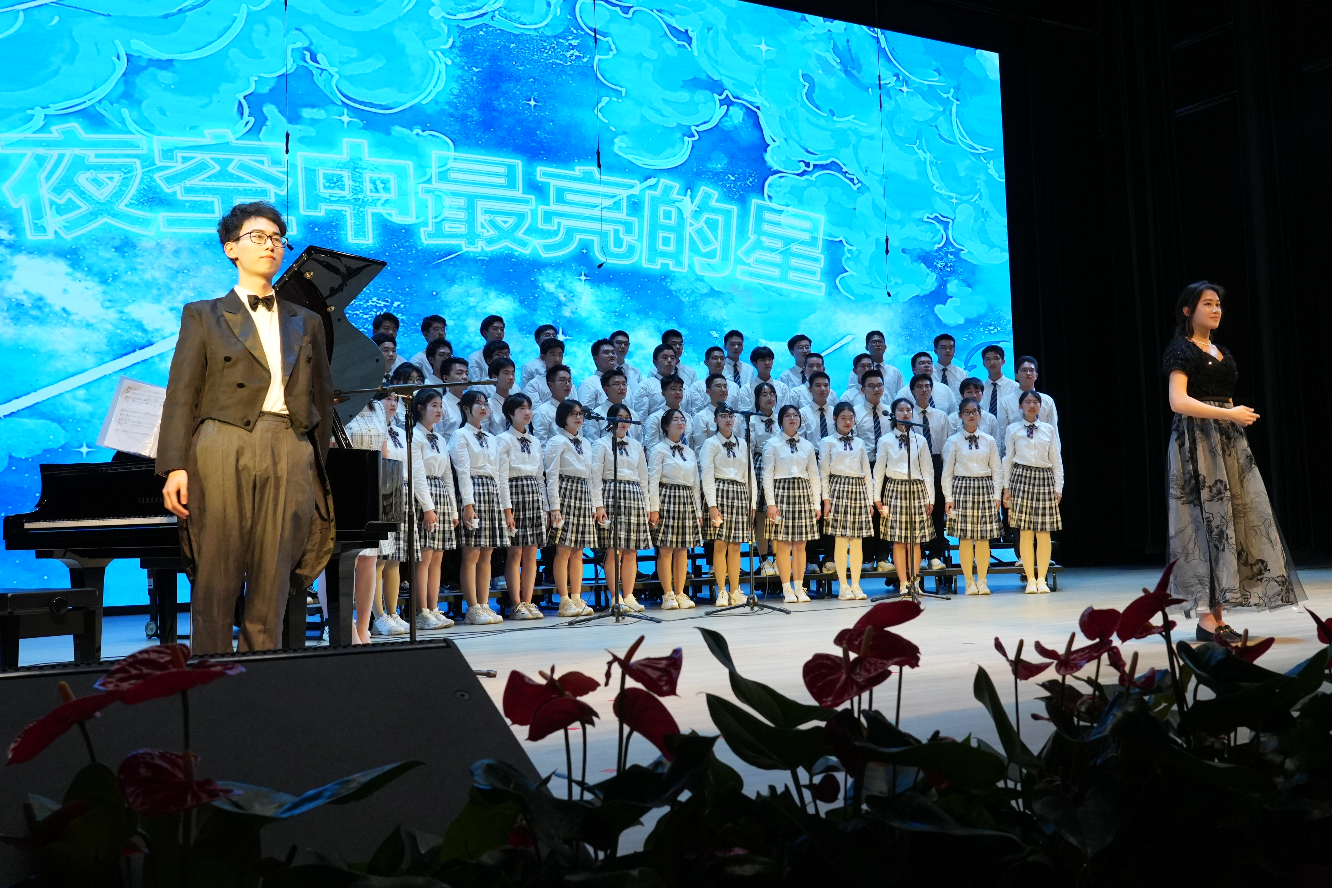 同学们以最好的状态放声歌唱一曲《如愿》唱出对祖国的深情;一首《错位时空(五四版)》诠释新时代青年的使命担当;温暖感人的《萱草花》让台下的家长感动泪目;温情励志的《送你一朵小红花》则让现场的同学们沉浸其中。《飞云之下》《祖国不会忘记》《星辰大海》《凤凰花开的路口》《青春舞曲》《Try Everything》《贝加尔湖畔》《我爱你中国》《这世界那么多人》《国家》《夜空中最亮的星》……每个班级自主选定表演曲目,原创编排,倾情呈现出一场盛大精彩的演出。