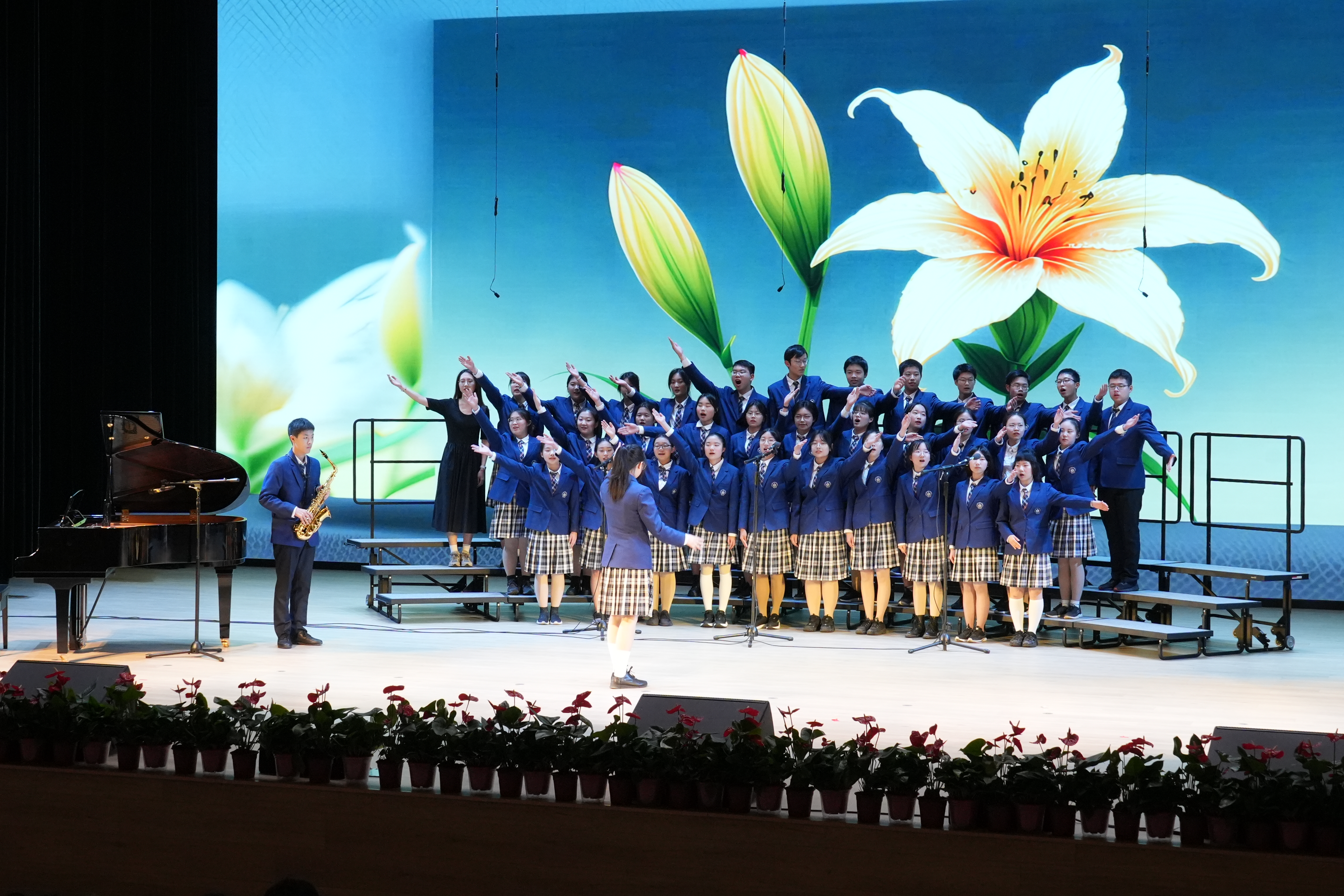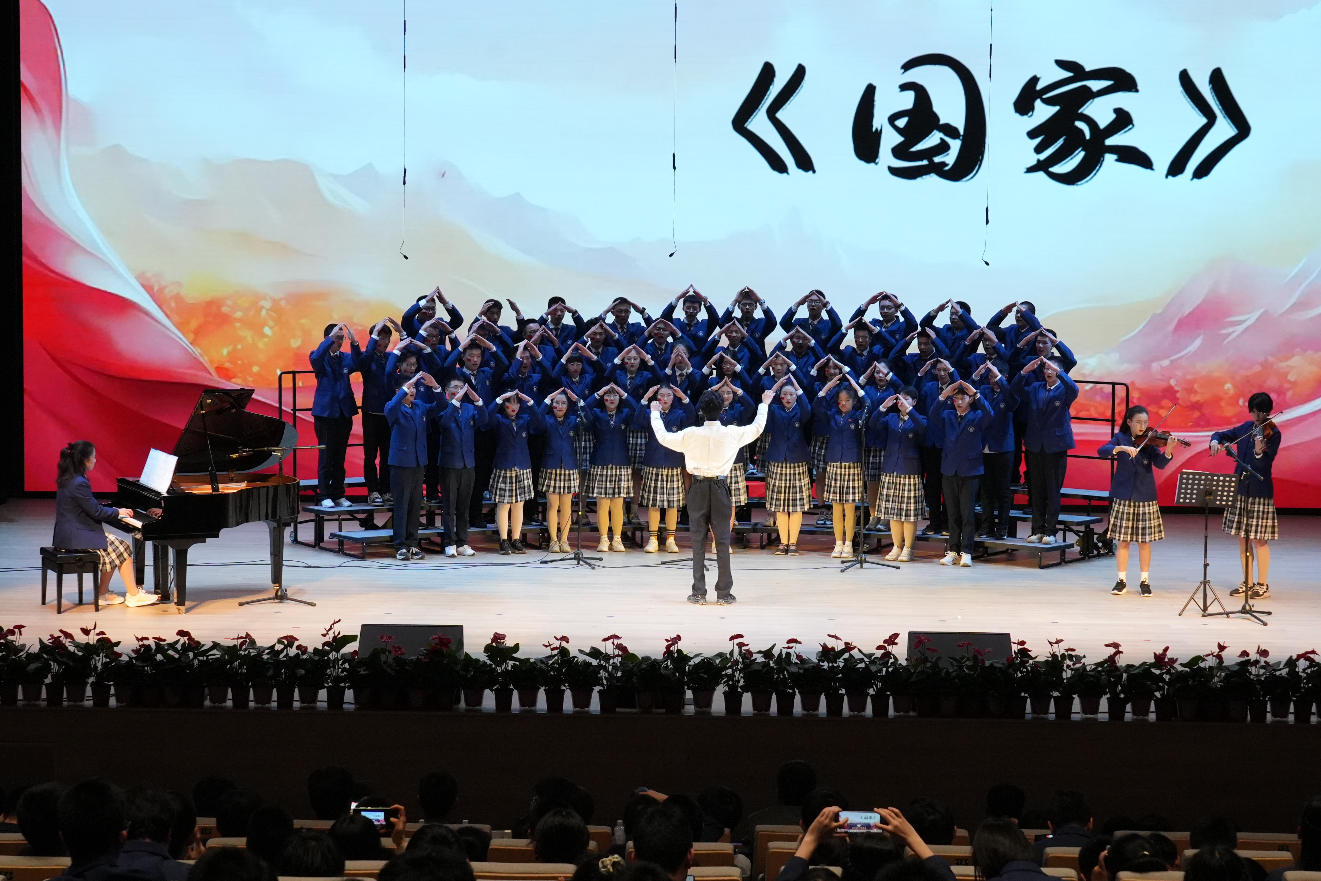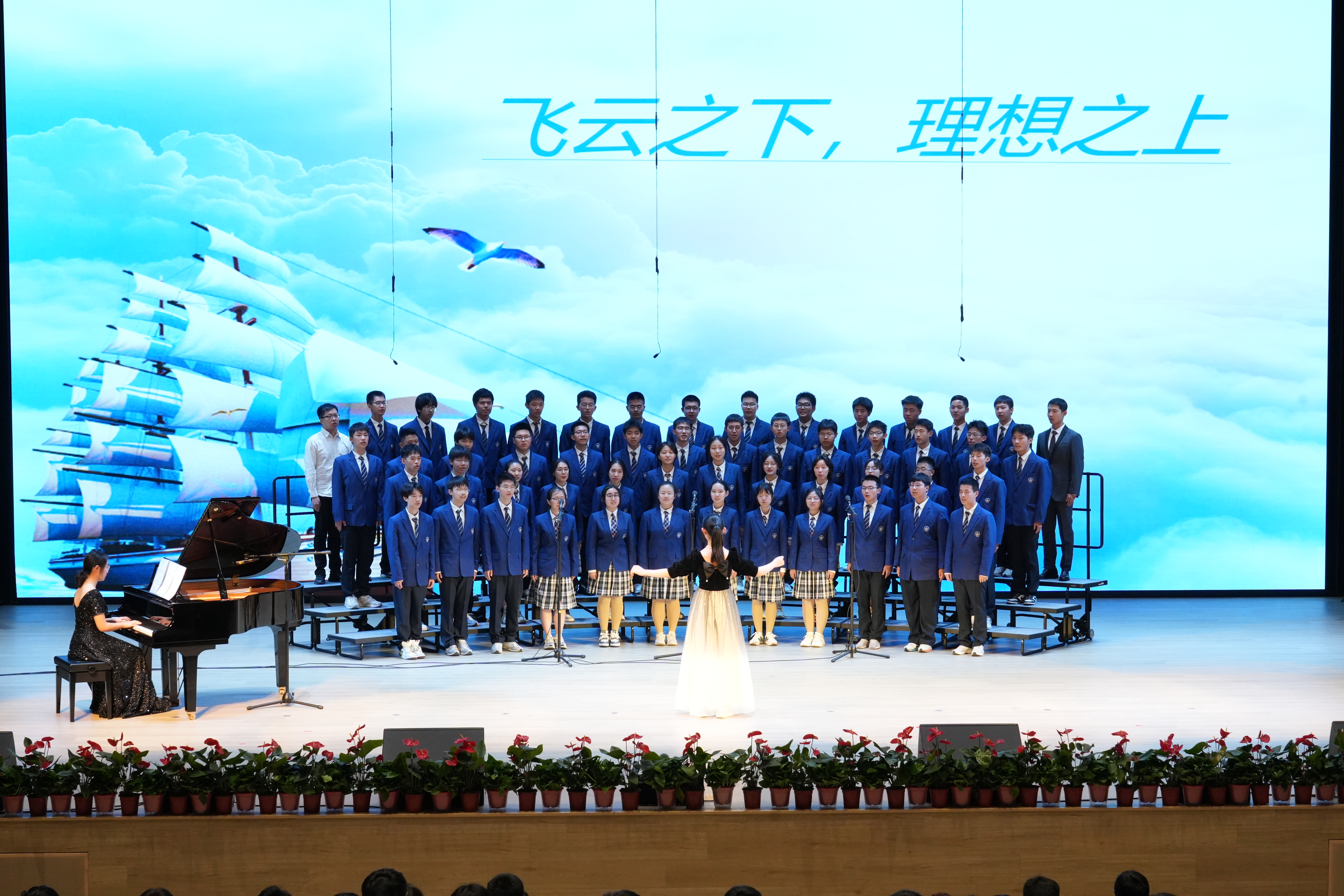 同学们以最好的状态放声歌唱一曲《如愿》唱出对祖国的深情;一首《错位时空(五四版)》诠释新时代青年的使命担当;温暖感人的《萱草花》让台下的家长感动泪目;温情励志的《送你一朵小红花》则让现场的同学们沉浸其中。《飞云之下》《祖国不会忘记》《星辰大海》《凤凰花开的路口》《青春舞曲》《Try Everything》《贝加尔湖畔》《我爱你中国》《这世界那么多人》《国家》《夜空中最亮的星》……每个班级自主选定表演曲目,原创编排,倾情呈现出一场盛大精彩的演出。