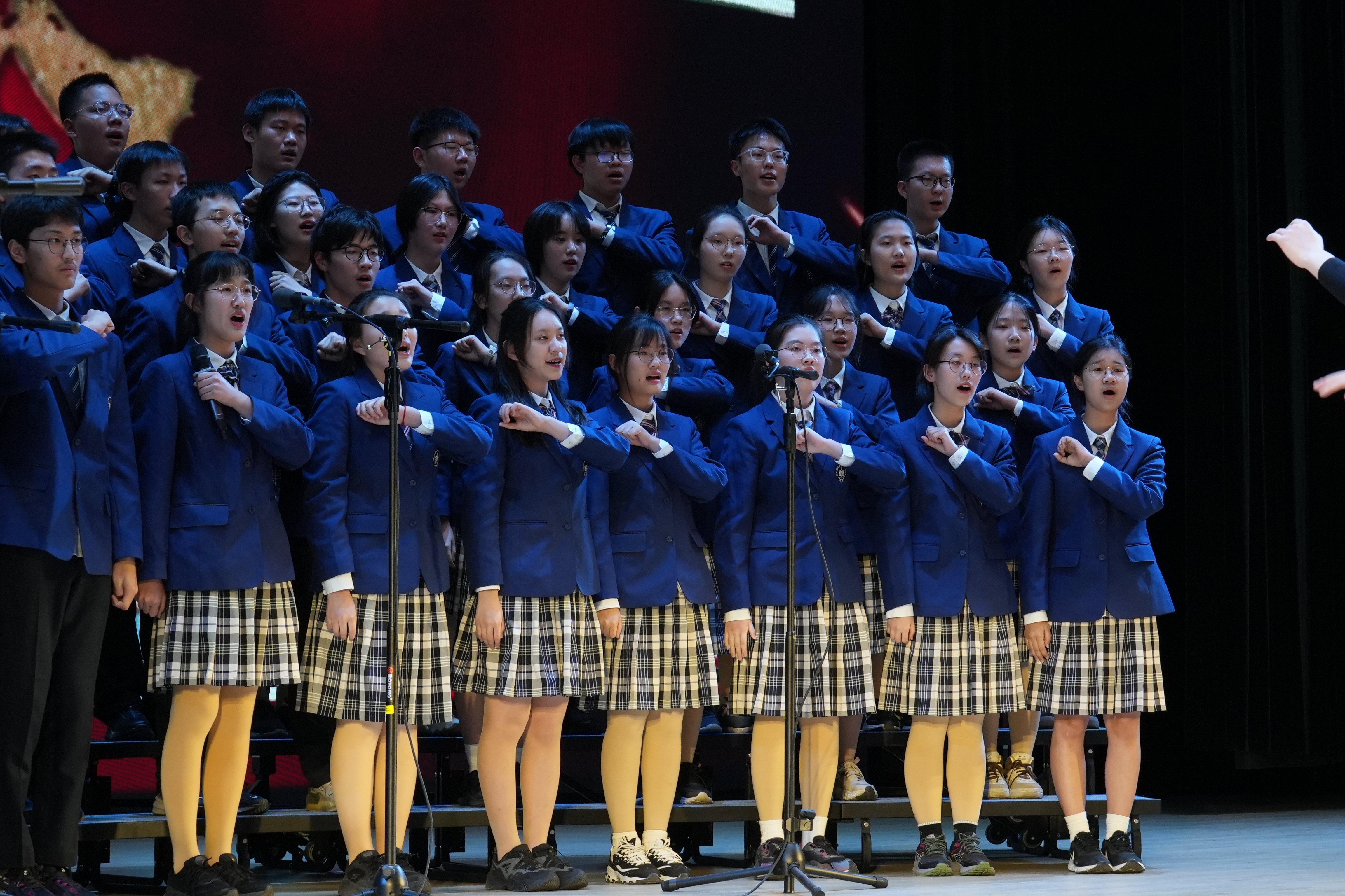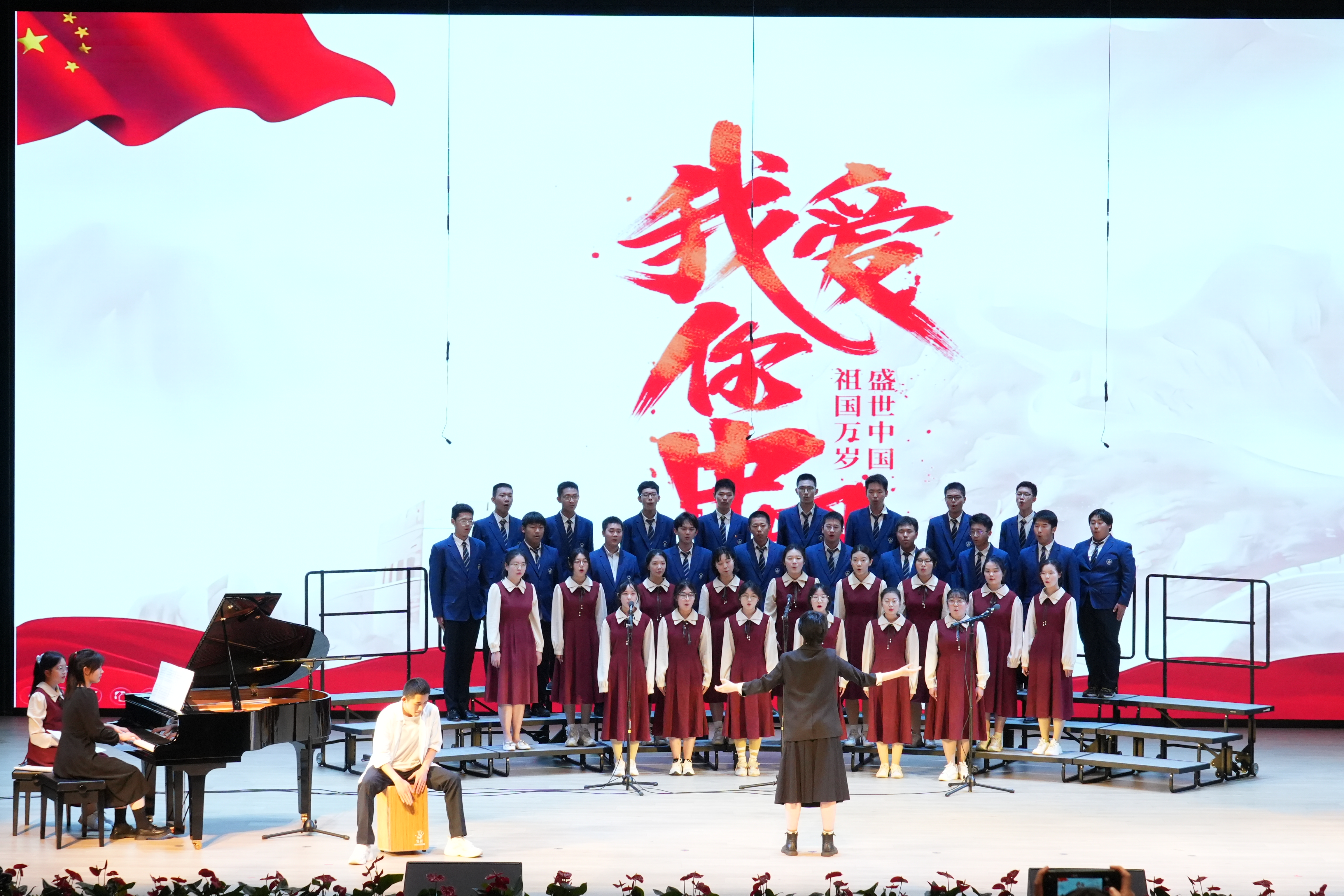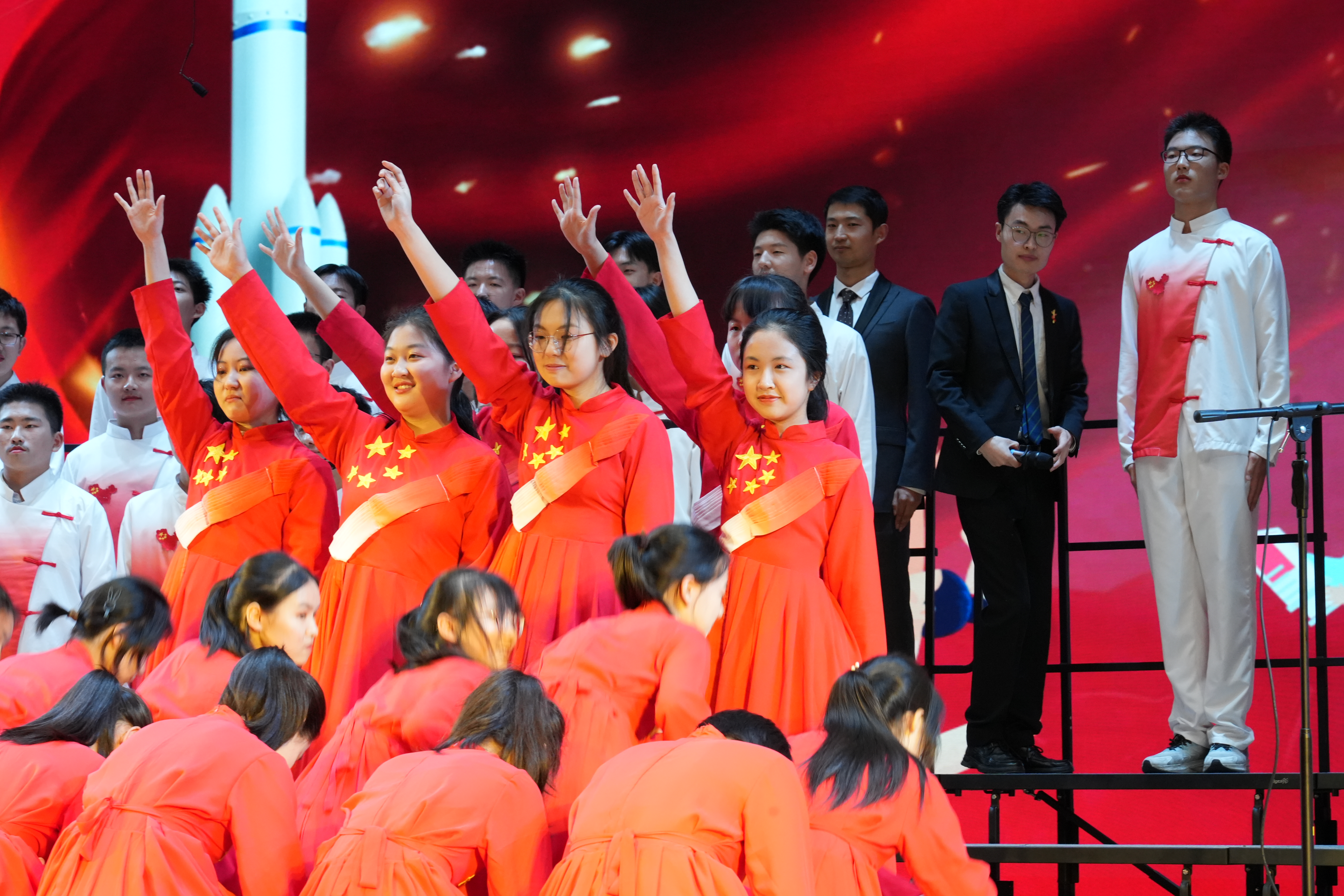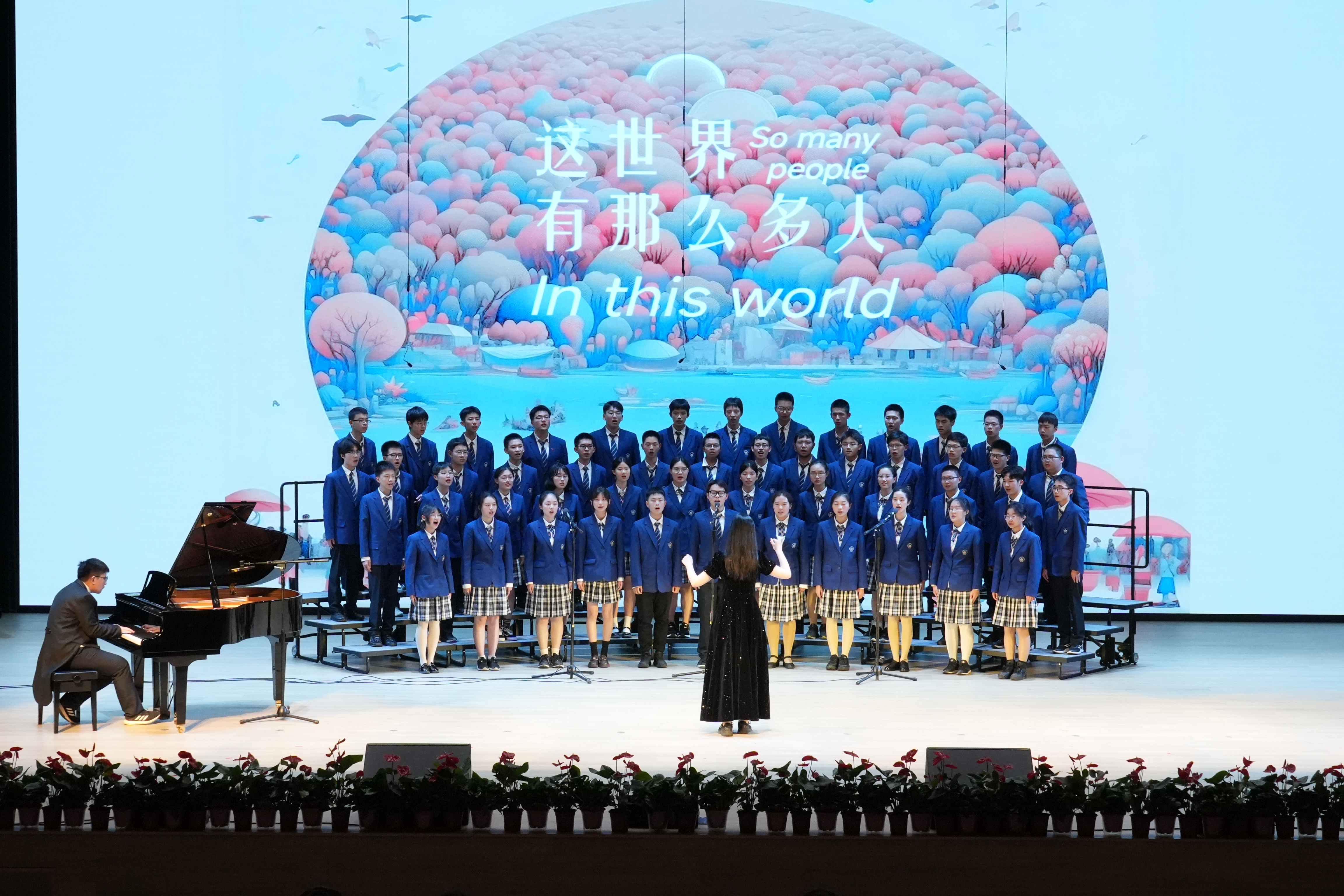 同学们以最好的状态放声歌唱一曲《如愿》唱出对祖国的深情;一首《错位时空(五四版)》诠释新时代青年的使命担当;温暖感人的《萱草花》让台下的家长感动泪目;温情励志的《送你一朵小红花》则让现场的同学们沉浸其中。《飞云之下》《祖国不会忘记》《星辰大海》《凤凰花开的路口》《青春舞曲》《Try Everything》《贝加尔湖畔》《我爱你中国》《这世界那么多人》《国家》《夜空中最亮的星》……每个班级自主选定表演曲目,原创编排,倾情呈现出一场盛大精彩的演出。