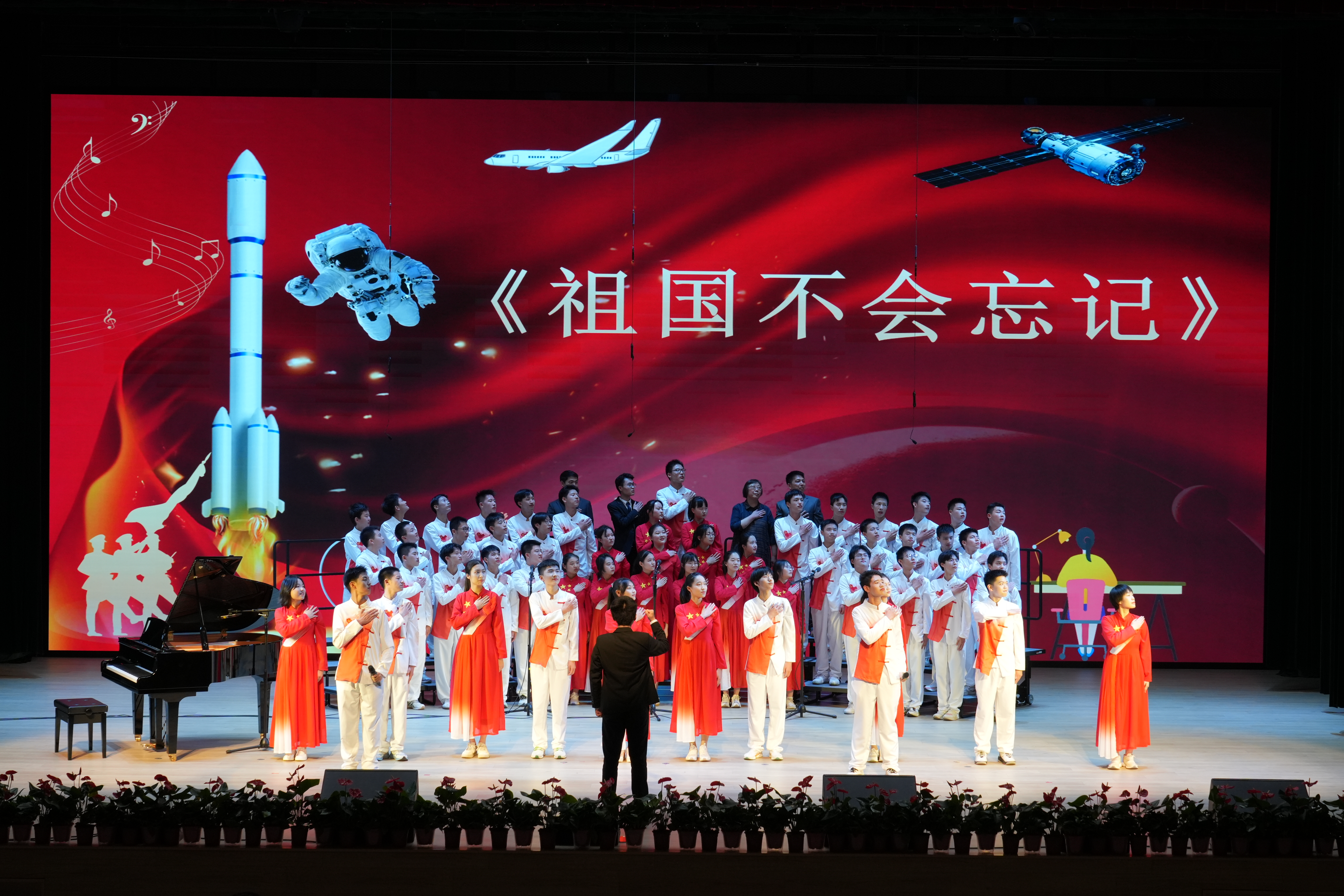 “我们班选择的合唱曲目是《祖国不会忘记》,我自己在台上演唱这首歌的时候,就感觉一种自豪感、使命感从心中升腾。希望通过这首歌曲表达对祖国的热爱与敬意,同时也希望通过我们的演唱,将这份情感传递给在场的每一个人。”