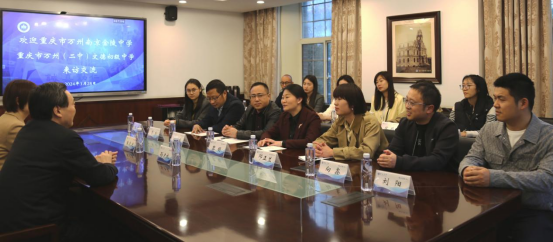 3月28日下午,在重庆市万州南京金陵中学党支部书记、校长黎明带领下,万州南京金陵中学、万州(二中)文德初级中学教师代表来到我校参观访问。