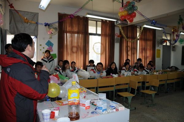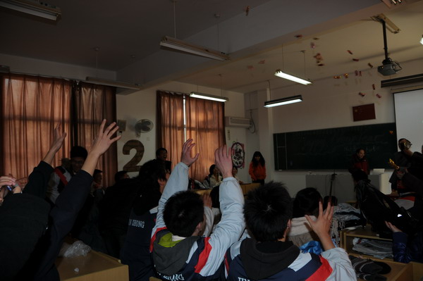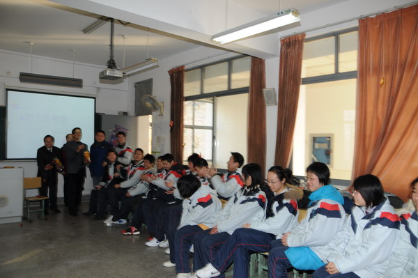 2008年12月31日下午,是金陵中学各班开展迎新年班级联欢活动的时间,邹正校长和尤小平书记及其他校领导,在各年级工作小组老师的陪同下,分头到各班为学子们送去新年问候和祝福,还为每位同学散发了糖果,受到了师生们的热烈欢迎。