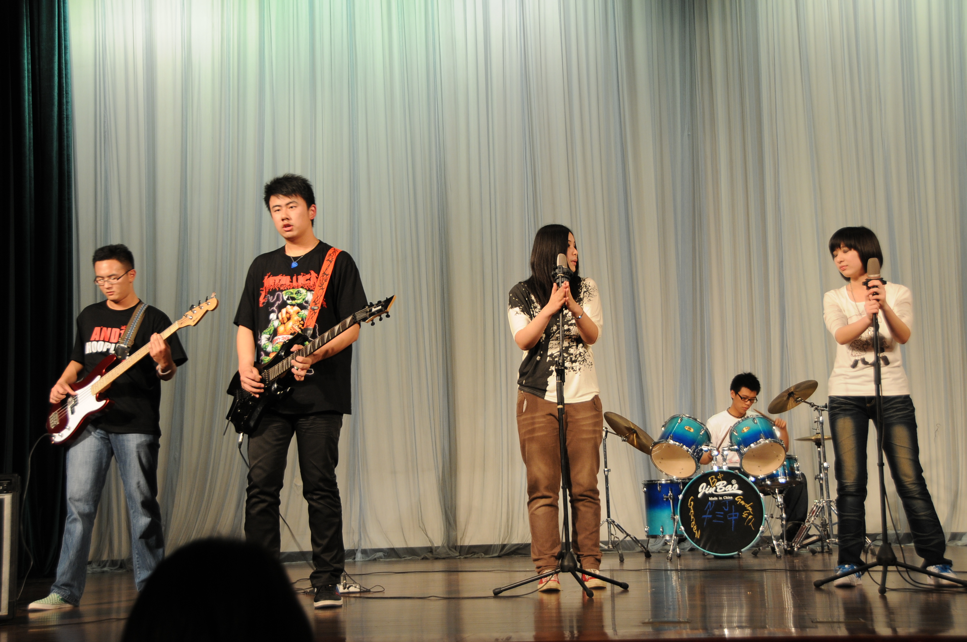 舞台灯光不停地转换着,后台准备也紧张有序的进行着。好不容易我们等到了报完幕下场的主持人们,其中一位主持人告诉我们,他们是在两周前才接到通知参加这次活动,由于时间特别紧,每天一放学他们从各个学校赶到主办方金陵中学参加对词和走台。不光是主持人,我们采访的五个节目组都反映准备时间不充分,来自金陵中学的乐队就因为键盘手有事临时替补了一位学生,仅仅磨合了一天就上场了;来自南京市外国语学校的舞台剧《花木兰》为了迎合赈灾的主题,取消了现代舞的成分,把重点放在了“热爱祖国、多难兴邦”。但从现场看,无论是舞台剧,还是歌曲,或是朗诵都是那么完美,都获得观众们持久热烈的掌声。