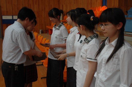 蒋校长为阶段测试中取得优异成绩的同学颁奖。