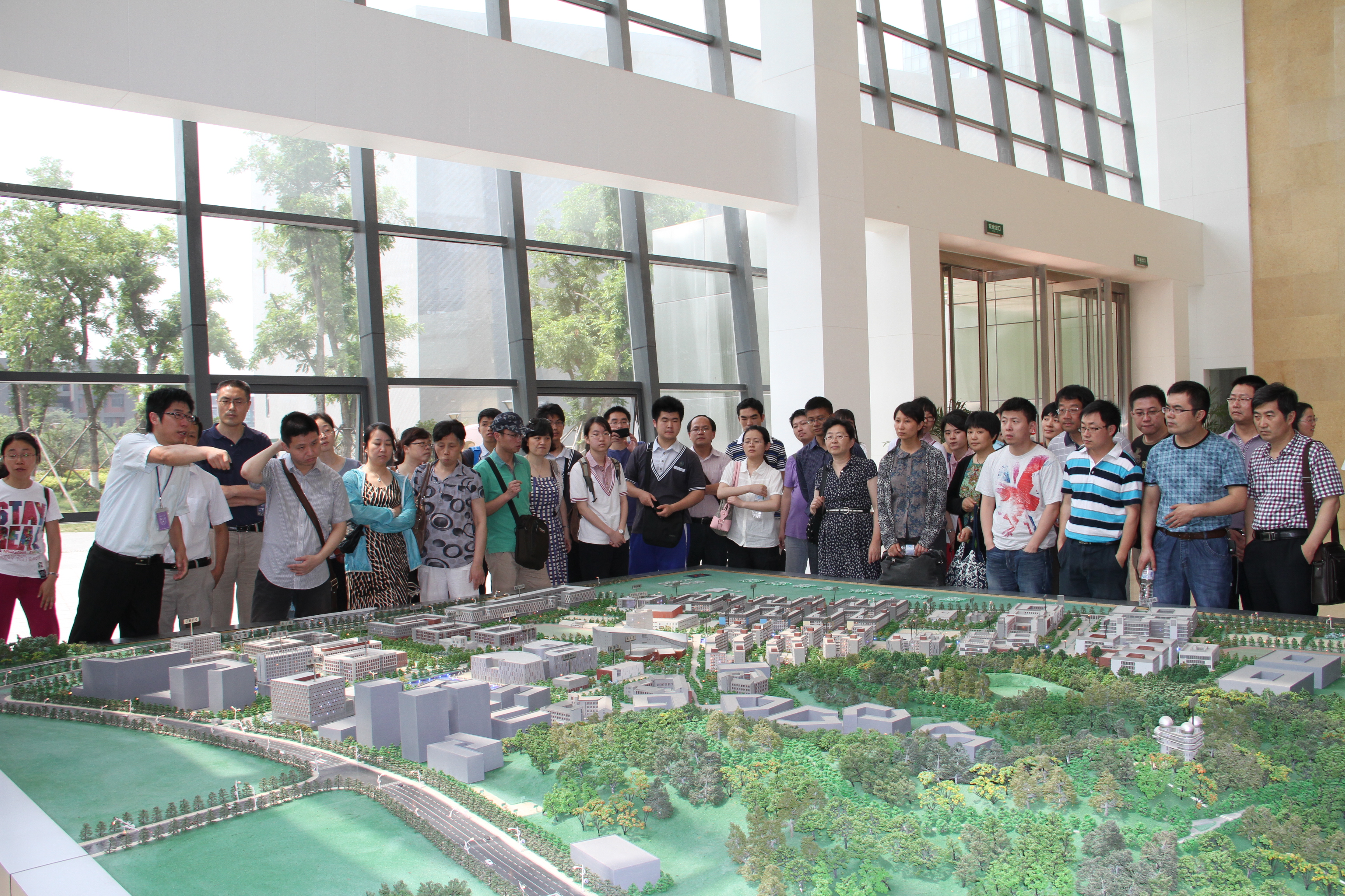 老师们在听取南京大学(仙林校区)沙盘模型介绍