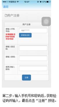 2.进入APP点击界面中的注册按钮,按照系统提示进行注册(如图);