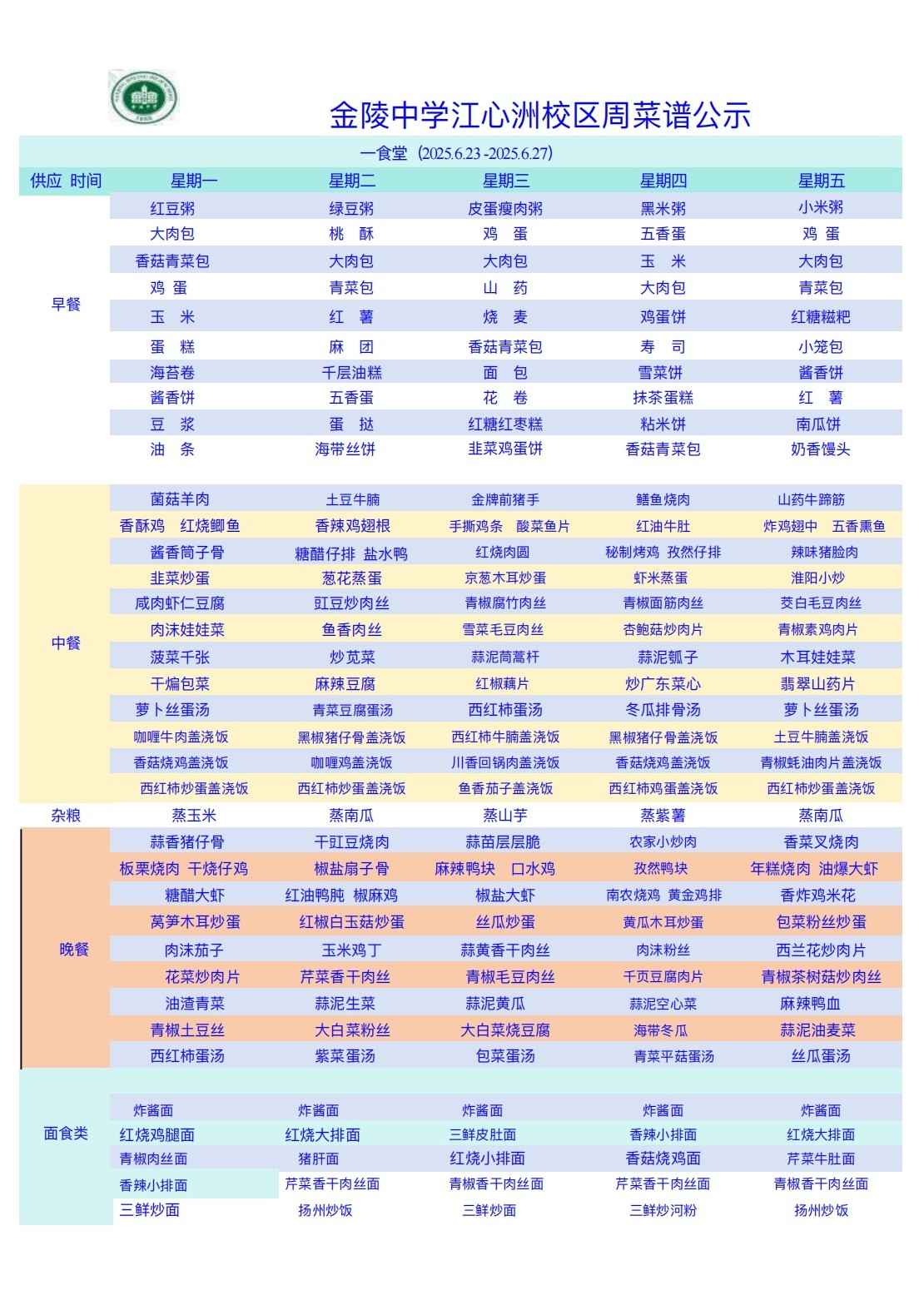 江心洲校区一周菜谱(2025.6.23—6.27)