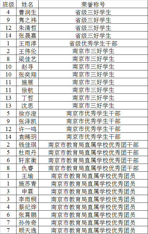 2017级学生获省、市三好学生、优秀学生干部、优秀团干部、优秀团员情况
