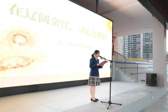 我今天发言的题目是:在辽阔金江,寻心之所向。时光如梭,今天是我们2025级金中人在金陵中学江心洲校区生活的第113天。113天前,望着眼前辽阔的江岛校园,我的心中既忐忑又憧憬:我可以适应高中生活吗?我的高中生活会是怎么样的?现在,我早已习惯将我们脚下的成长沃土称为“金江”。这种强烈的身份认同,给予了我辽阔的心境与视野。于是,我看见了一件件温暖的生活小事,也正是这些“暖心瞬间”让我的心之所向有了具体模样。