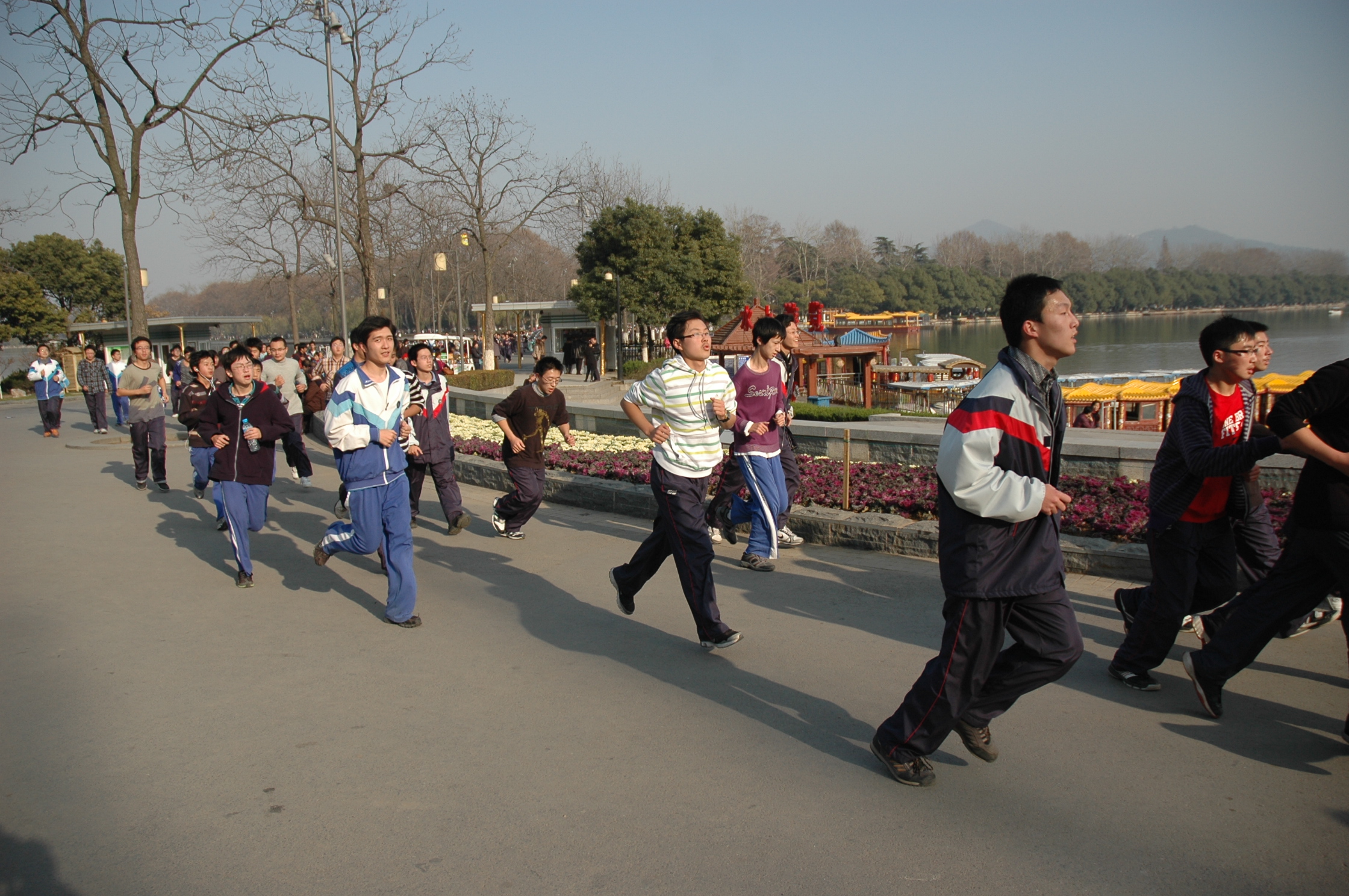 上周三下午,全校两千多名师生在玄武湖进行了环湖跑。在猎猎的冬风里,成为玄武湖一道亮丽的风景线。
