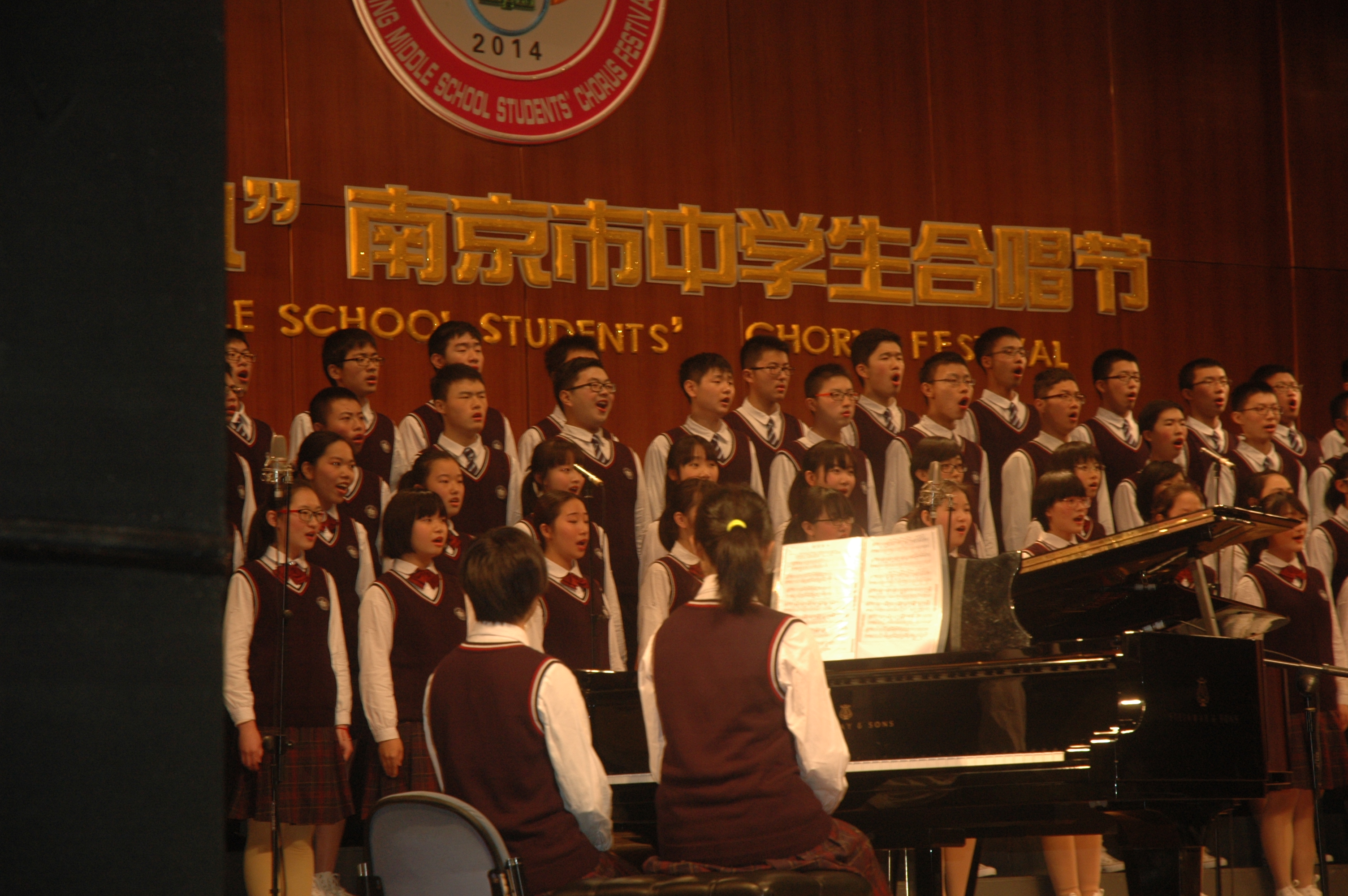 11月29日,在南京市文化艺术中心举行了“纪念一二•九南京市中学生合唱比赛”,我校合唱团表现出色,获得了特等奖。此前,合唱团60多名学生在沈阳老师和刁雪梅老师的带领下进行了一个月的训练,演唱曲目是《沂蒙山歌》和《南屏晚钟》,指挥沈阳老师,钢琴伴奏高一11班毛晨昱、高一9班车雨辰。