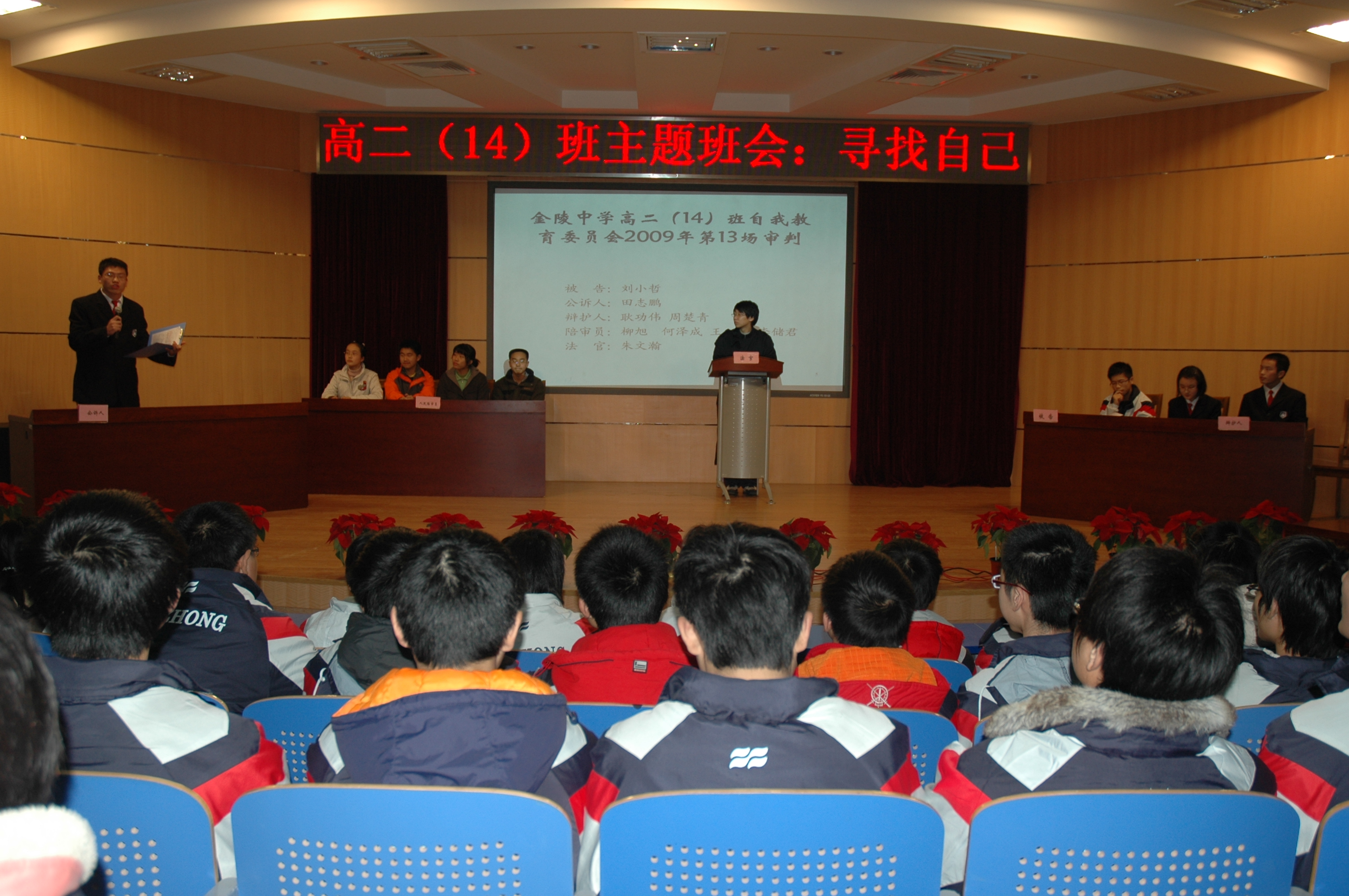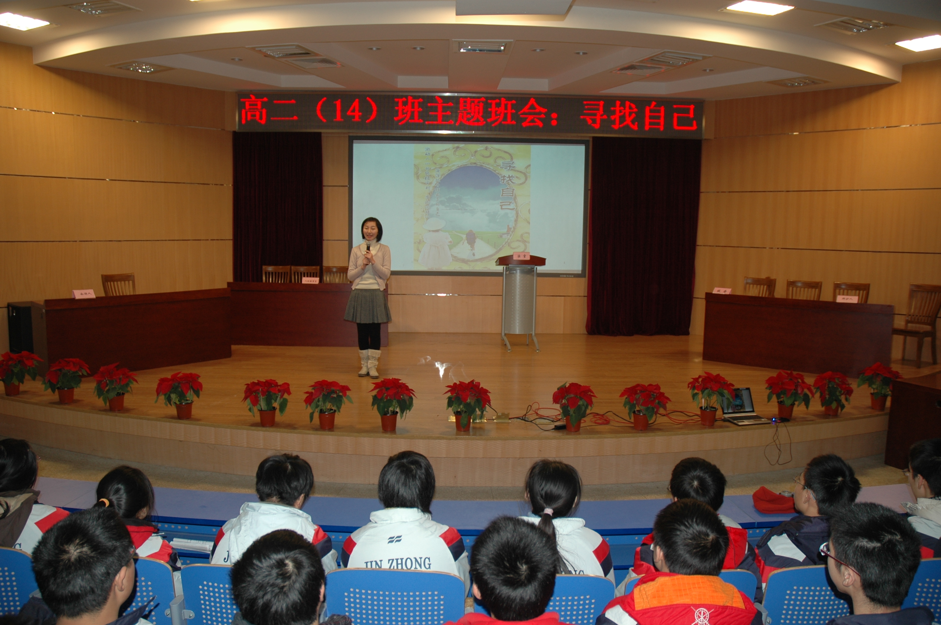 12月16日下午4点20分,在科学馆报告厅,高二(14)班《寻找自己》的主题班会赢得了南师大教育科学院研究生和金中老师的掌声与喝彩。