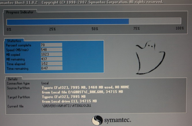 (注:电脑中的系统备份文件放在硬盘最后一个分区的“GHOST文件夹”中,请毋删除,否则无法恢复系统。)