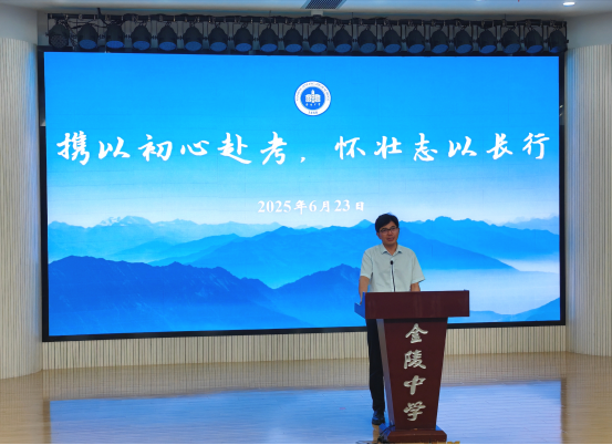 六月的金中,树影婆娑,青春飞扬,钟楼巍峨,骊歌奏响。昨天见证了高三学长学姐们的依依惜别、青春永不散场。今天又来为我们的期末考试助威、呐喊!风华正茂的你们,又将迎来一个逐鹿中原,挥斥方遒,问鼎大地,谁主沉浮的群雄争霸时刻。那么,就让我们一起,携初心以赴考,怀壮志以长行!