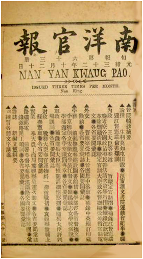 《南洋官报》是光绪三十年(1904)正月初一,由设立于南京的南洋官报局出版的一份官报,由南洋通商大臣,两江总督署主办。报道写道:“是日,开运动会,吾省垣中官立、民立、公立各学堂以数十计,学生以千人计,搴校旗而往者襁属于道,至则环场植立伍承弥缝,有如行阵。”这反映了开运动会当日,全省城范围中参赛的官立、民立、公立各学堂有几十个,参加运动会的学生上千人。可见,运动会属省级规模、参赛学校多,参赛运动员学生达千人以上。高举着校旗前往的人在道路上连续不断,到达运动场后环场植立运动队跟随在后,就好像行军打仗的阵列。可见声势盛大。