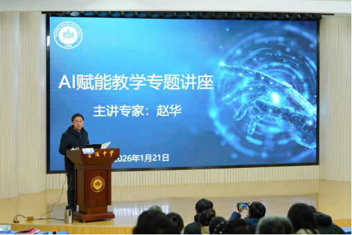 许峰校长发表开场致辞,他强调孙小红书记高度重视AI赋能教学,指导部署了一系列的研讨活动,年初亲自布置全体教师学习了《通用人工智能》;上周五,邀请参与学生至上”开放日的五位教师分享AI赋能教学的深刻见解;今日,系列活动第三场专家讲座举行,再次邀请到老朋友赵华教授,他将深入剖析相关理论,引领我们探索教育实践新高度。
