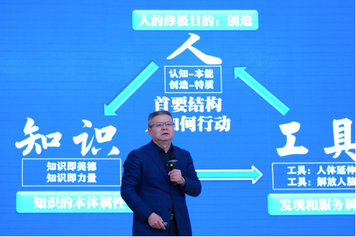 未来课堂核心是明确形态,构建“混合型学习共同体”。在此共同体中,教师转型为“超级教学助理”,为学生提供个性化支持;学生拥有“个人思维教练”,实现精准成长。赵教授强调智能体是工具,教育最终要落实到人的能力发展,培育有深度、联结力和创造力的人才。人类作为“超级合作者”,能在前人基础上创造新知识。学生需建立高质量知识目录,这是高质量创造的前提。教育要助力学生构建知识体系和思考习惯。未来教师角色具双重性,既要传承共情能力成“人师”,又要具前瞻视野成“设计者”。教育价值是守护和点燃创造火花,培育聪慧、有思想、有担当的新一代。人类创造力遵循“吸收—积累—创造”逻辑,教育要助力学生构建知识架构,培育思考习惯,为创造筑牢根基。赵教授强调思考是获取真知的唯一途径,教育实践要以“促进思考、积累知识、激发创造”为核心,助学生掌握知识、学会思考、善于创造。