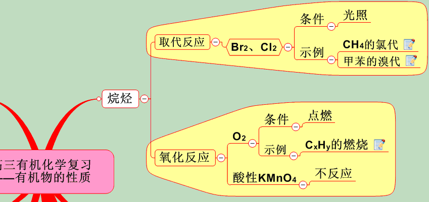 课后布置学生自己利用思维导图整理出炔烃的性质、芳香烃的性质等内容。