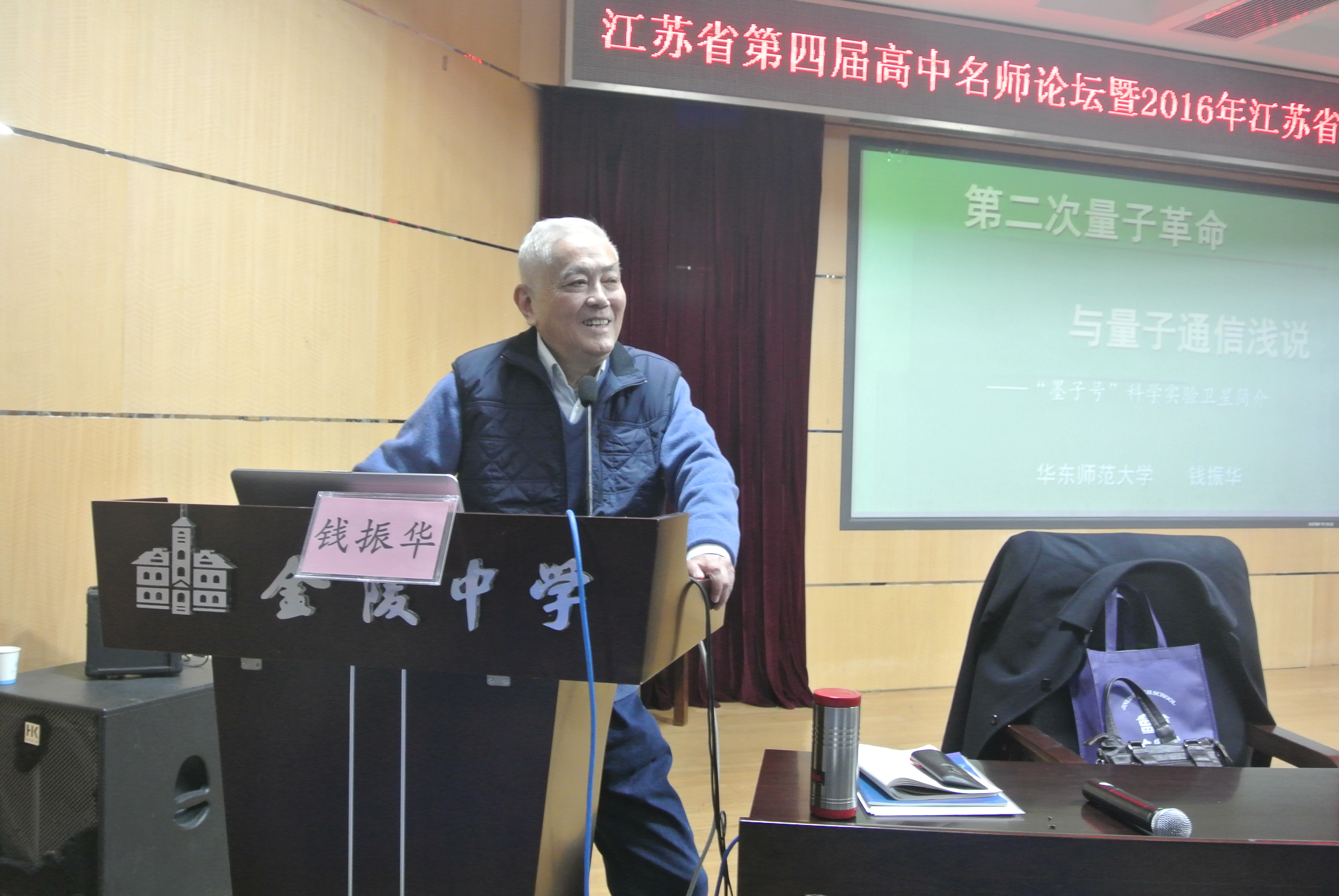 江苏省第四届“高中物理名师论坛”于2016年12月8日-9日在南京市金陵中学召开。本次论坛由江苏省中小学教学研究室、江苏省教育学会物理教学专业委员会、江苏省物理学会中学工作委员会共同主办,南京市教育局教研室、南京师范大学出版社、江苏科学技术出版社共同协办。