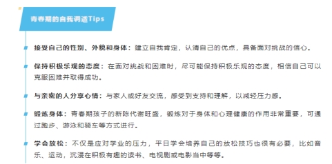 那么,当青少年在遭遇青春期困扰时,该怎么做呢?曹金翔医生贴心地给出了几点建议: