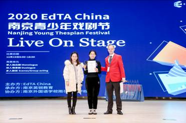 2020年12月19日,EdTAChina南京青少年戏剧节圆满地落下了帷幕。此次戏剧节竞赛单元分为个人项目和团体项目,其中个人项目包括单人独白和双人情景剧,团体项目则是多人剧目。由南京市金陵中学中美班学子组成的小队在大赛中带来了精彩绝伦的视听盛宴,并获得了江苏省冠军亚军季军的好成绩。