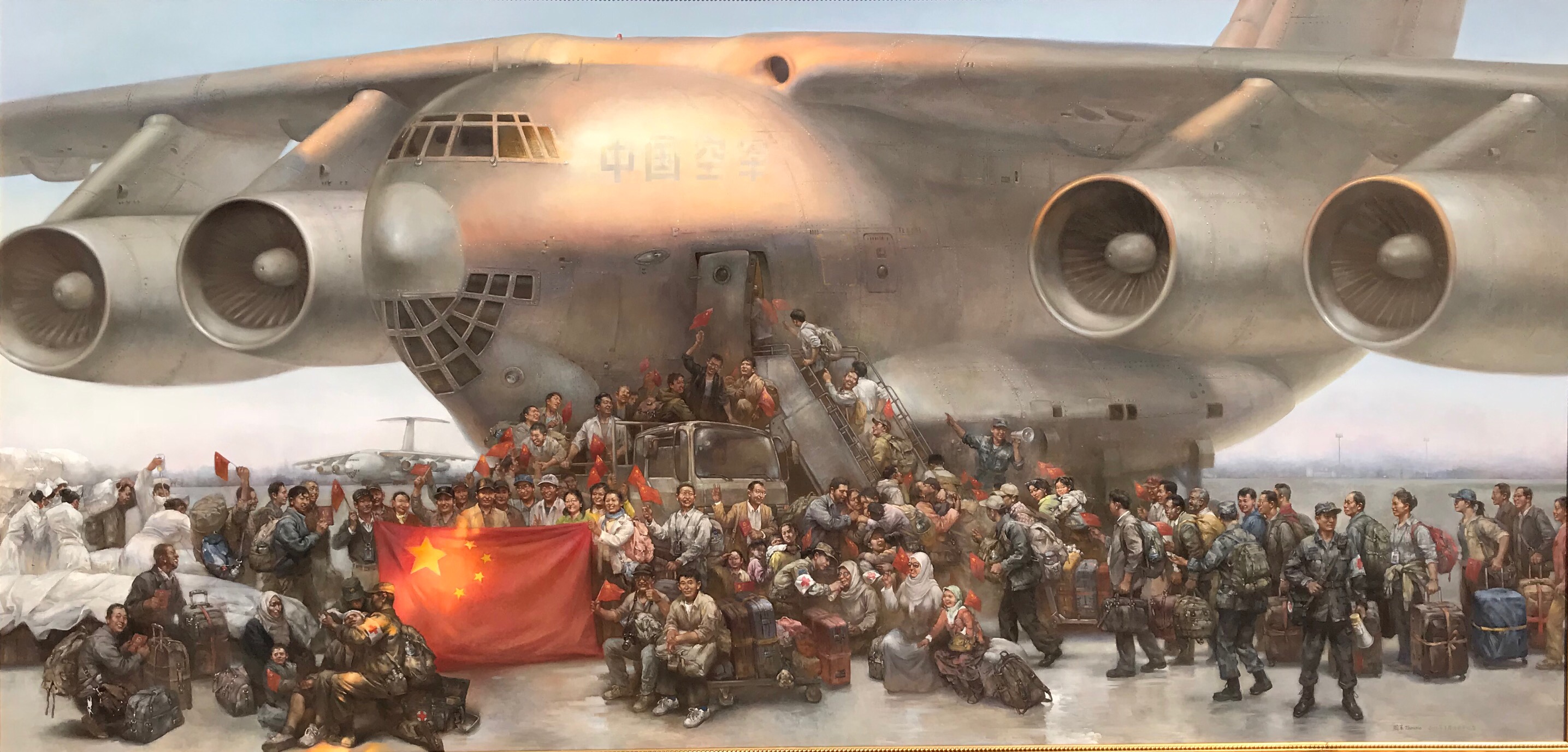 由中宣部主办的“不忘初心•牢记使命•庆祝中国共产党成立100周年大型美术作品展”于6月27日在中国共产党历史展览馆开展。我校2002届校友周末的油画作品《大国行动·紧急起飞·撤侨》参展。该作品展示了中国海外撤侨的场景,以艺术之美诠释在中国共产党领导下中华民族实现从站起来、富起来到强起来的历史性飞跃,体现了中国的大国形象。