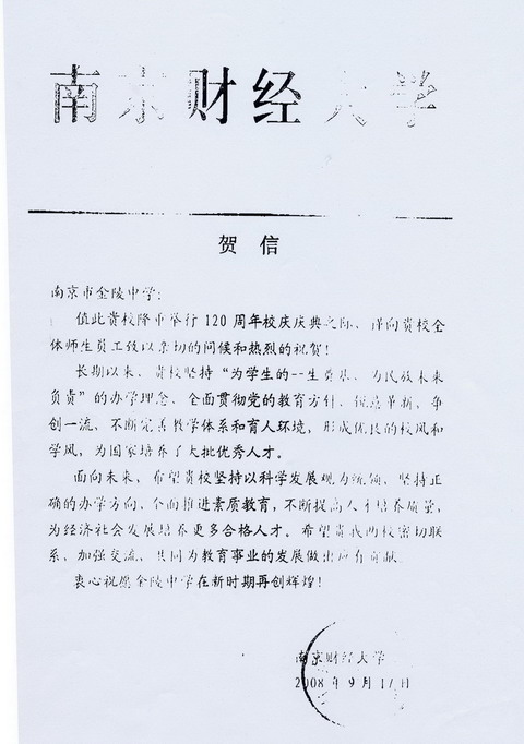 南京财经大学贺信