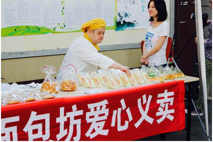 同学们帮助爱德面包坊宣传并销售面包,不光是给喜憨儿学员们一个享受平等生活的机会,而且帮助大家了解喜憨儿是一群既特殊又平凡的人群,更是提倡一种“授人以渔”的公益形式,让更多的人体会到通过自己的双手,获得平等人生是每个人的权利。