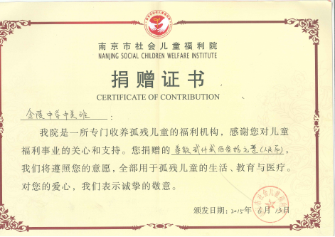 6月13日,我以本次慈善活动组织者,代表M&D社团及中美班来到了南京市儿童福利院,将此次话剧表演的善款全部捐出。一直以来,举办一场学校有史以来最特殊,并完全由学生举办并售票的话剧活动是我自高一进校以来的梦想,也是M&D社团的宗旨:创造第一次。