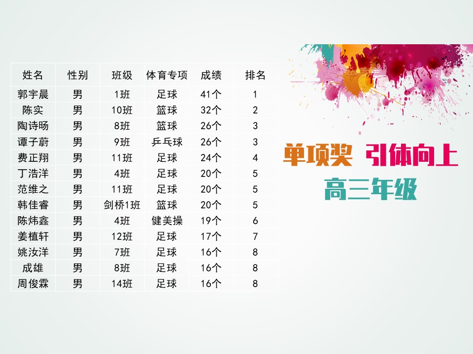 金陵中学国家学生体质健康测试成绩公示及星体测比赛获奖名单