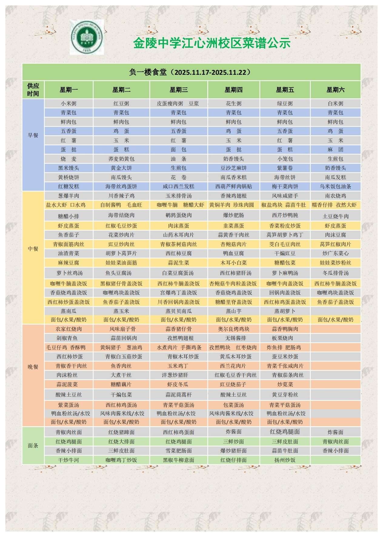 江心洲校区一周菜谱(2025.11.17—11.22)